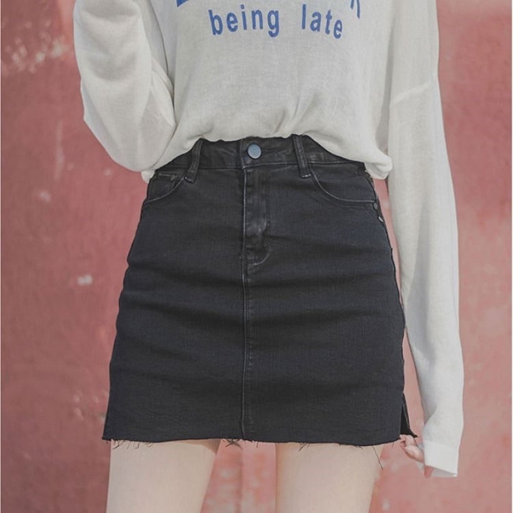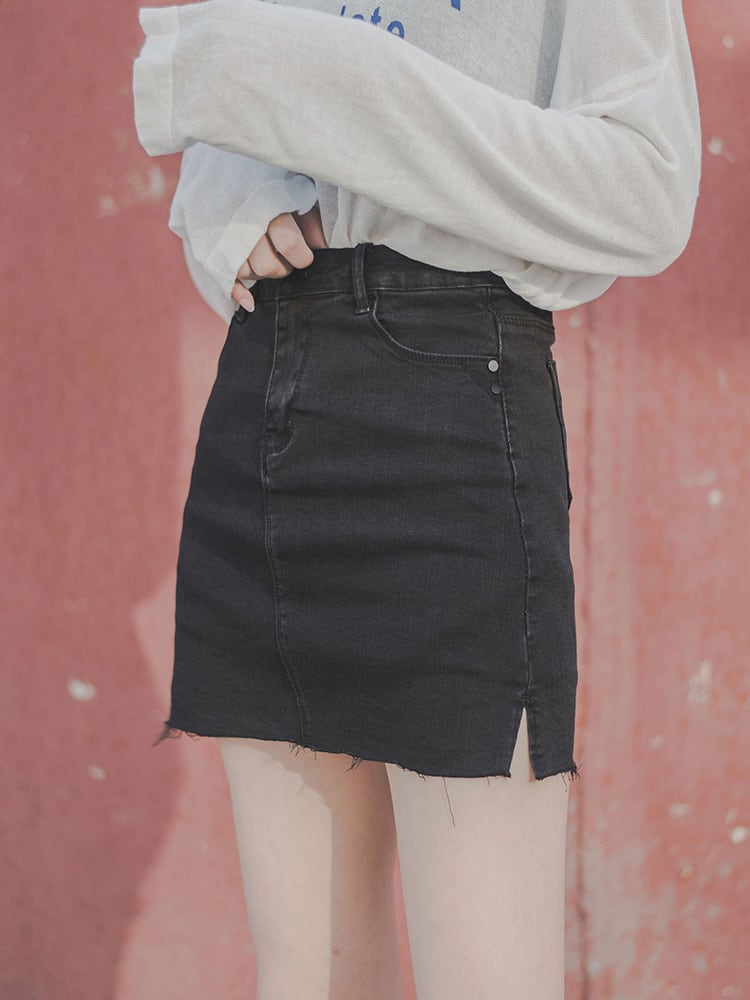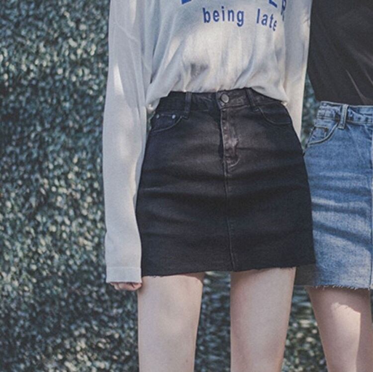 デニムスカート ミニスカート 切りっぱなし カットオフ ハイウエスト 無地 レトロ カジュアル お出かけ デート デイリー 普段着 ブラック