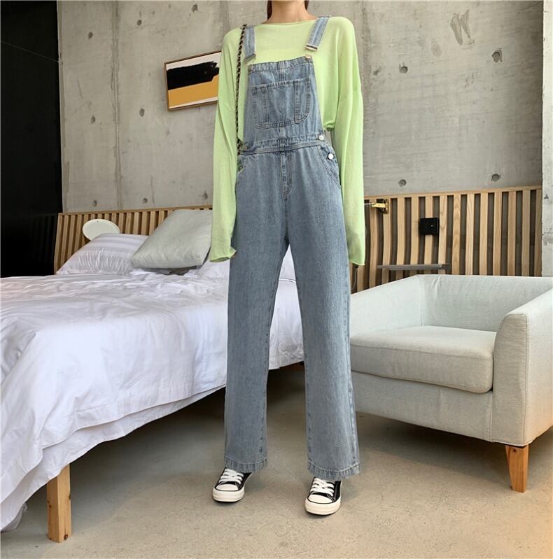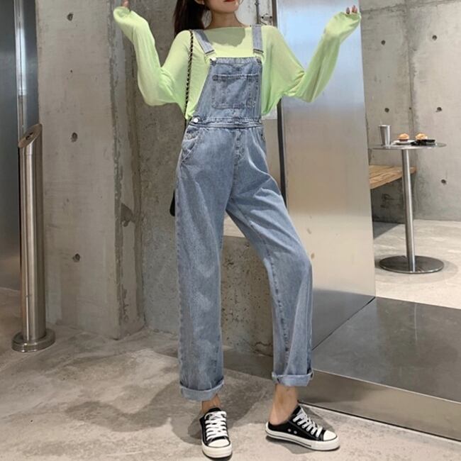 オールイワン サロペット デニム ジーンズ ゆったりめ カジュアル ラフ デイリー おしゃれ 大人可愛い ワイドレッグ サスペンダー 上品 シンプル スリム デート 韓国ファッション 夏 春