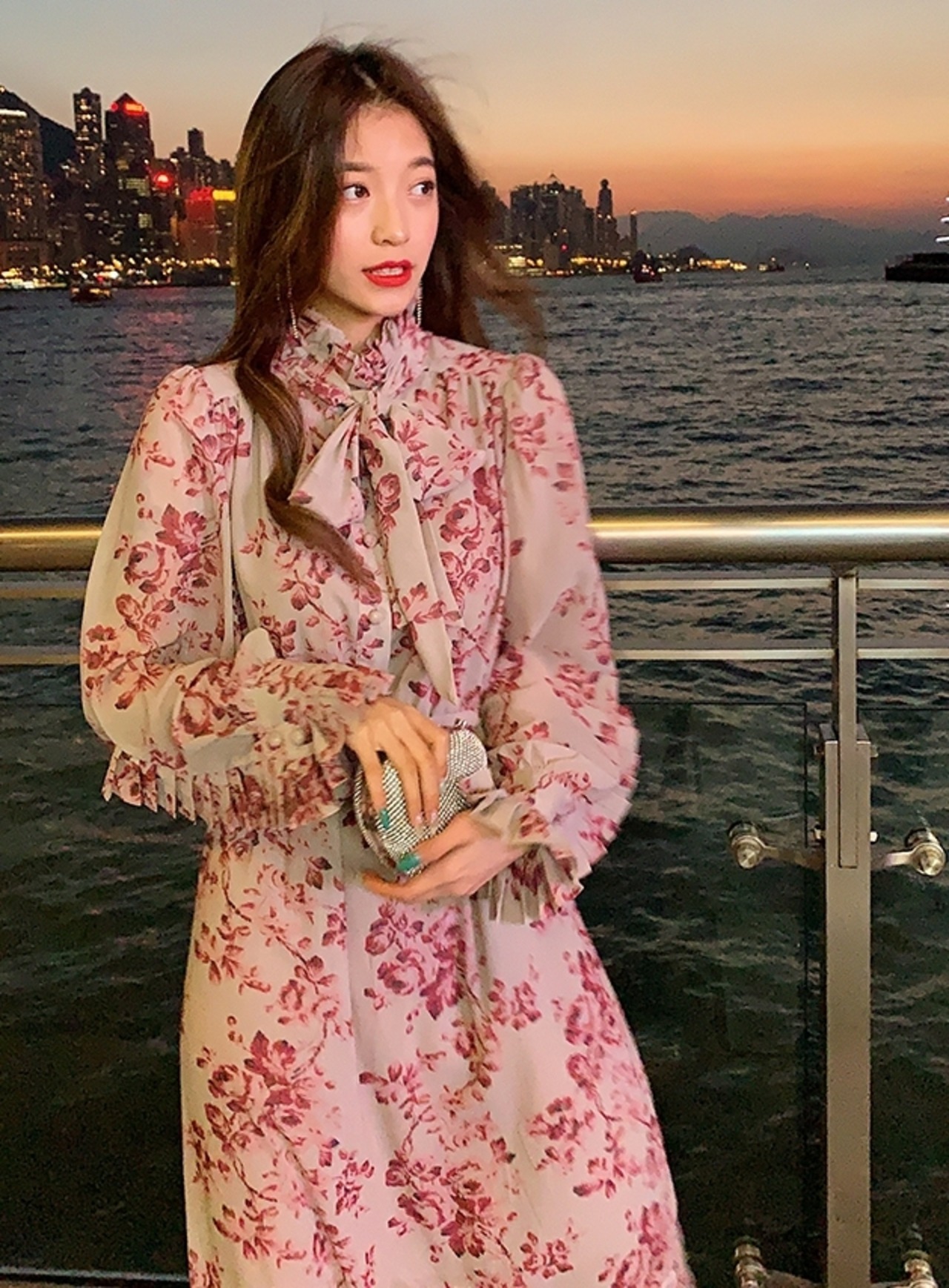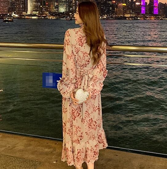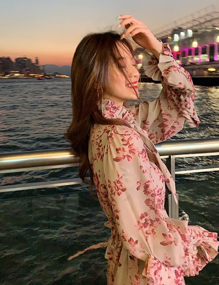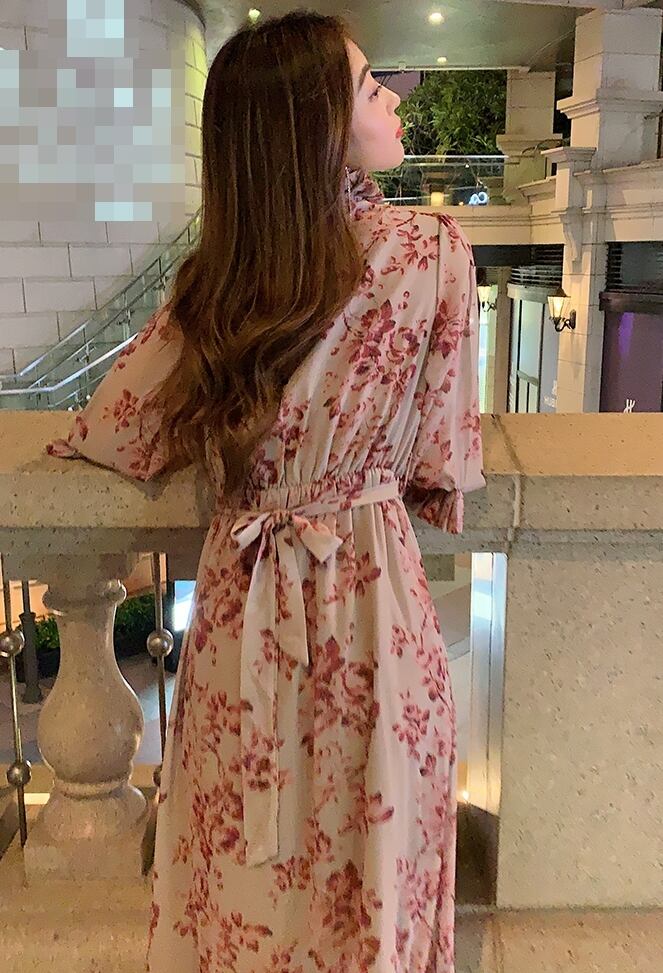 花柄が上品で大人っぽい印象のロング丈ワンピースです。