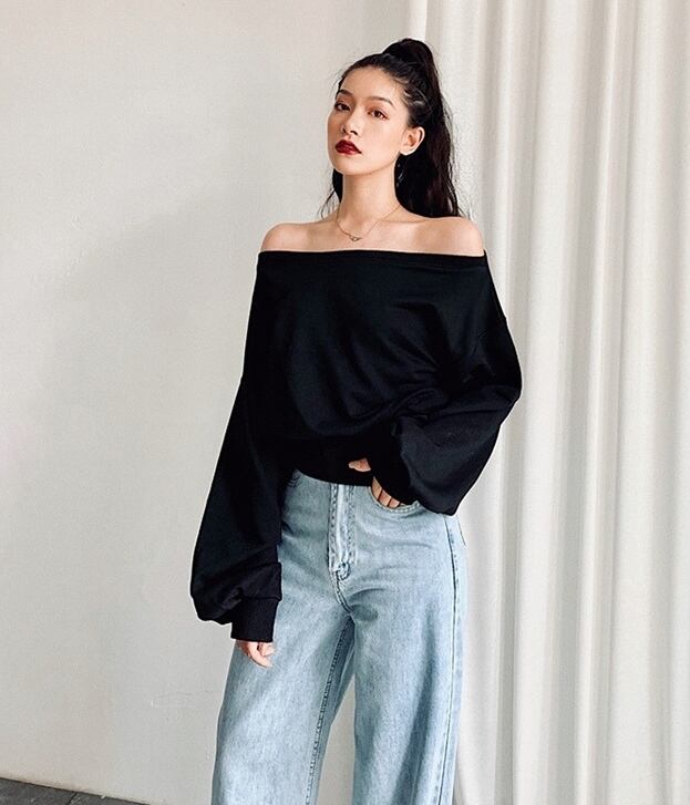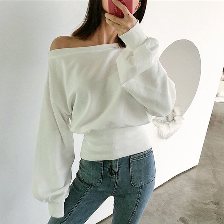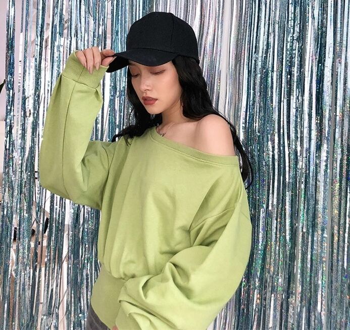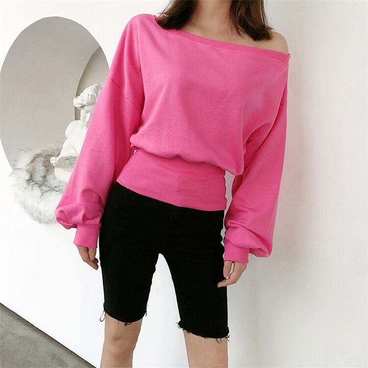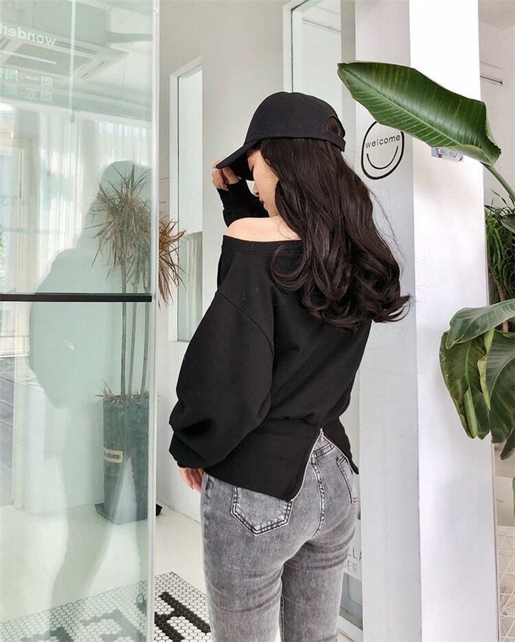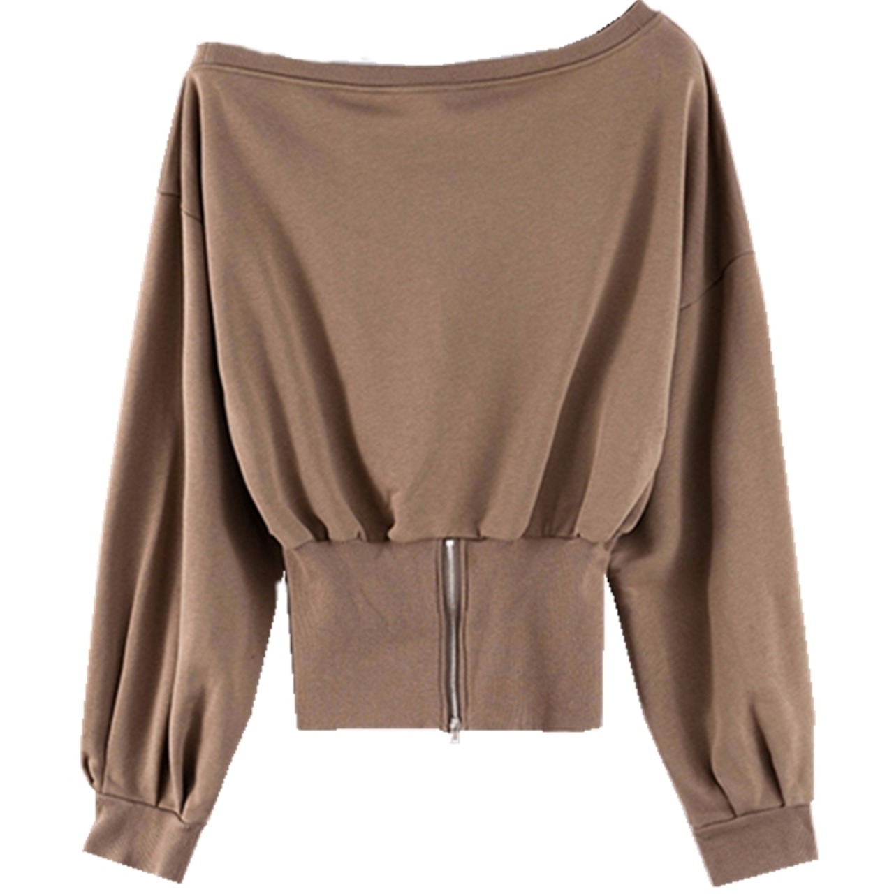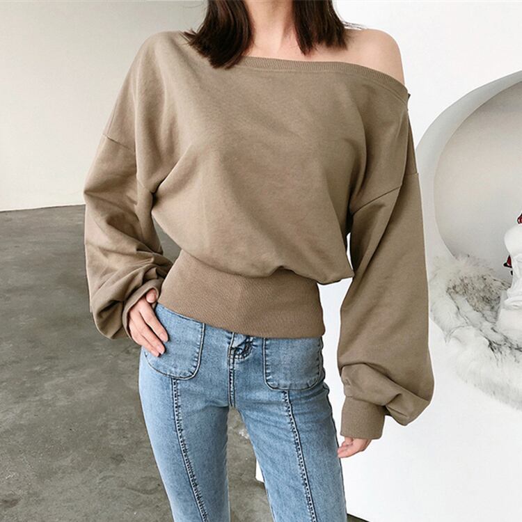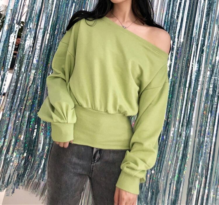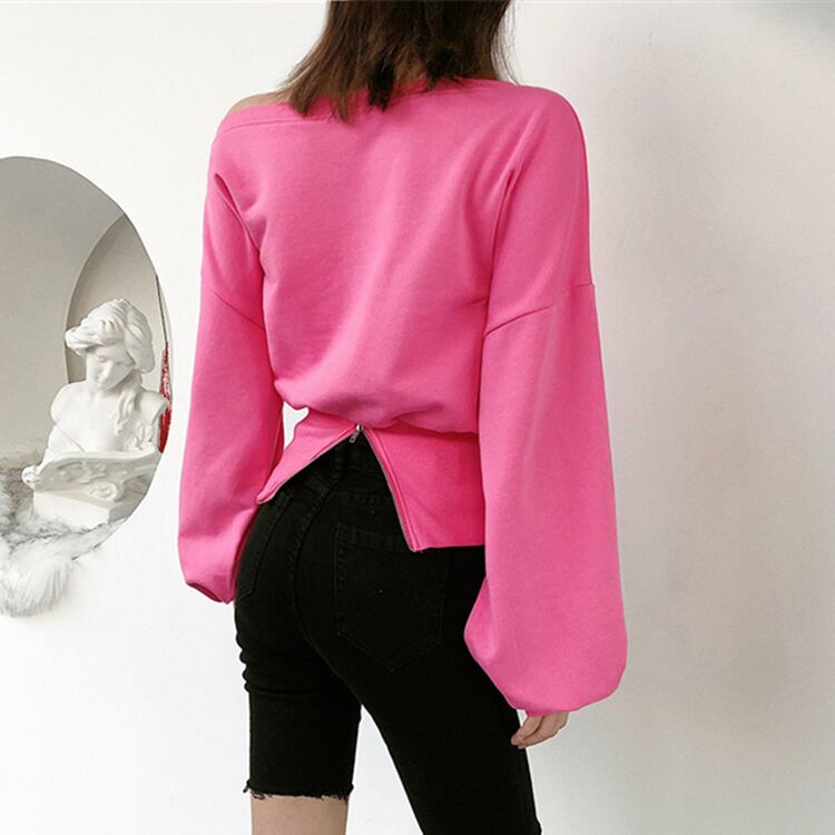 全5色トップス ブラウス ブルオーバー トレーナー スエット バックシャン ロングスリーブ ゆったり 無地 ランタンスリーブ オーバーサイズ ワンショルダー バックジッパー カジュアル デイリー 春