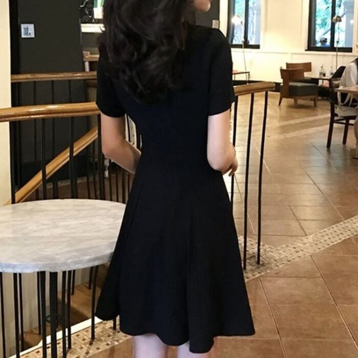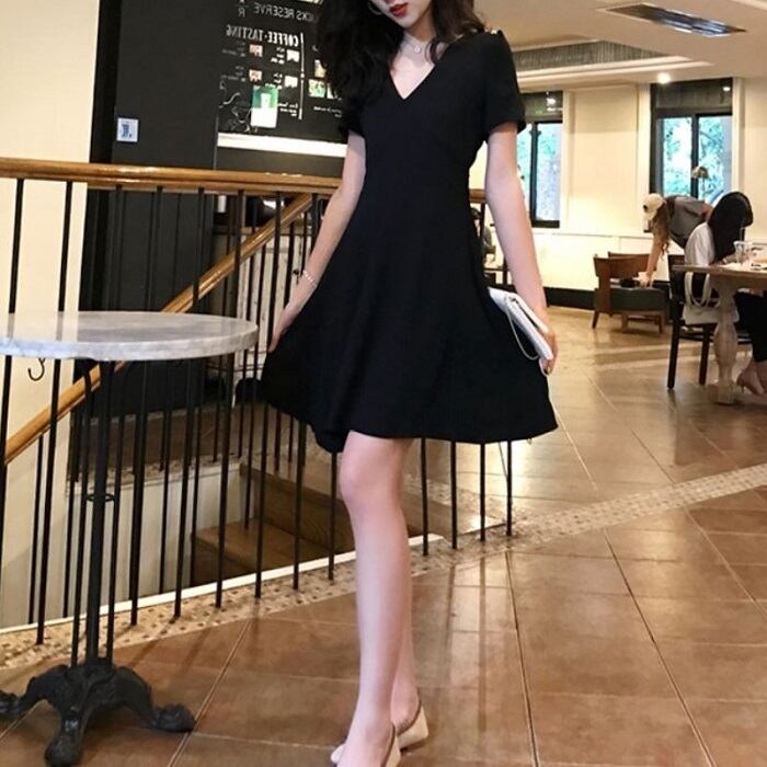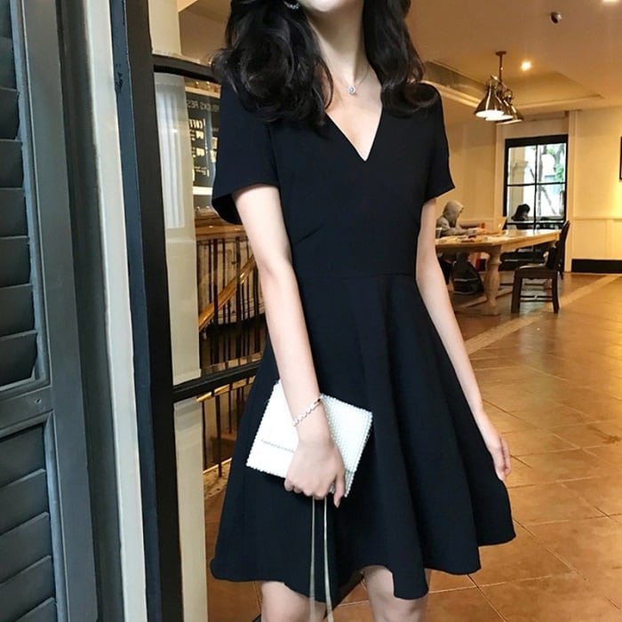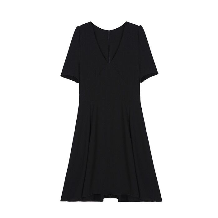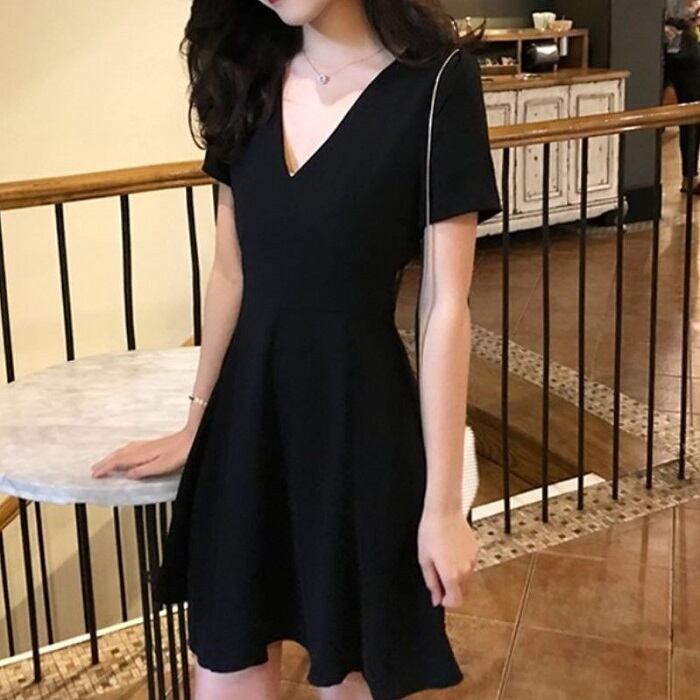 シンプルなAラインのフレアミニワンピース。