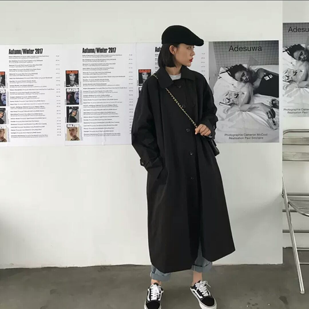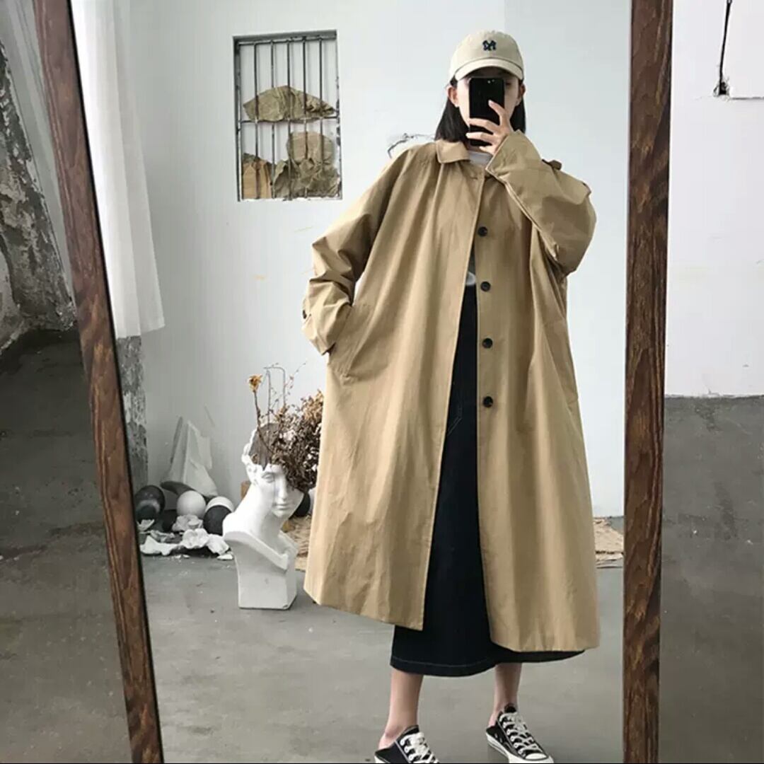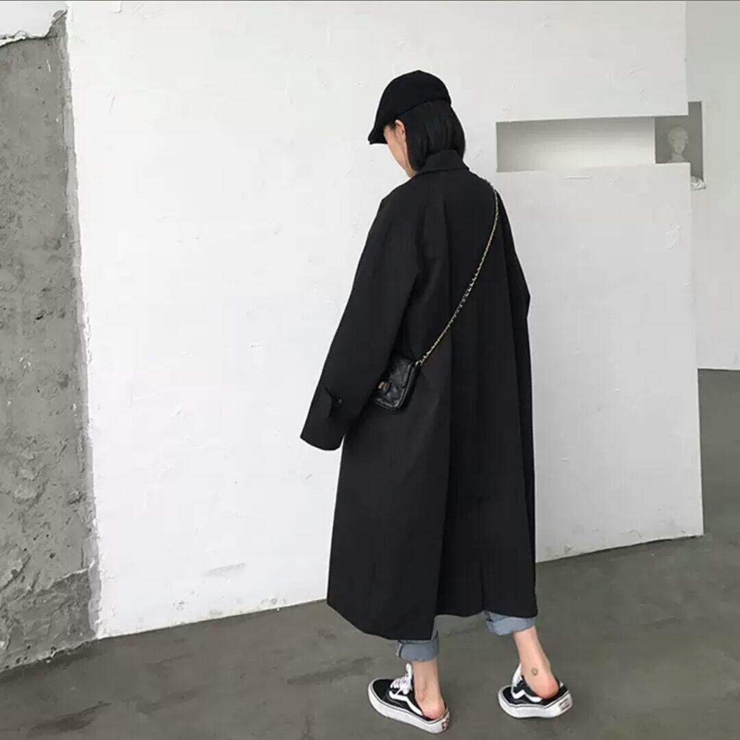 全2色 トレンチコート アウター 羽織 ロング丈 ジャケット 大人 カジュアル キレイめ シンプル 無地 ゆったり フリーサイズ お出かけ お買い物 デート 女子会 春 秋 通学 学生 通勤 韓国ファッション