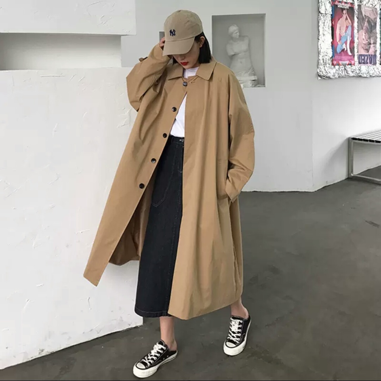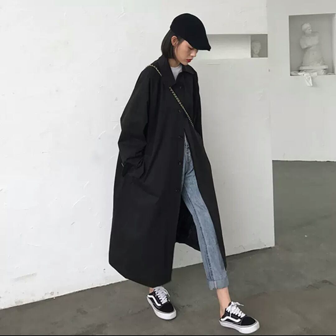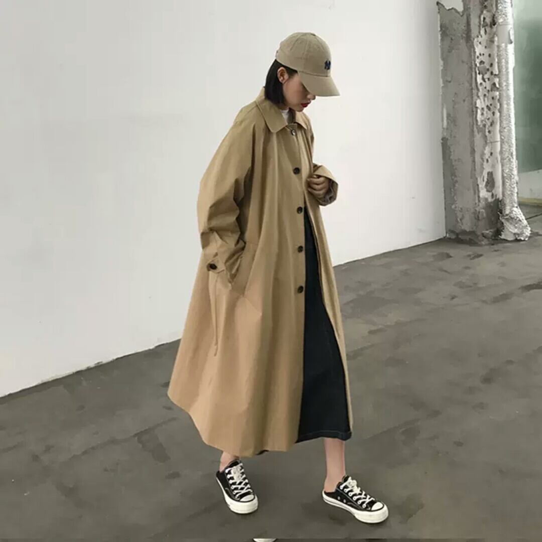 全2色 トレンチコート アウター 羽織 ロング丈 ジャケット 大人 カジュアル キレイめ シンプル 無地 ゆったり フリーサイズ お出かけ お買い物 デート 女子会 春 秋 通学 学生 通勤 韓国ファッション