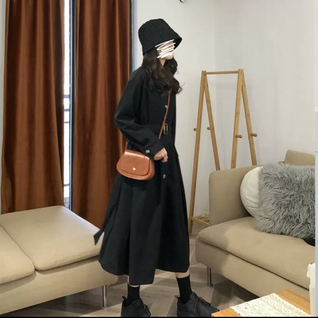 全2色 トレンチコート アウター 薄手 レトロ ロング丈 大人 可愛い キレイめ カジュアル 上品 シック お出かけ お買い物 デート 女子会 春 秋 通学 学生 通勤 韓国ファッション