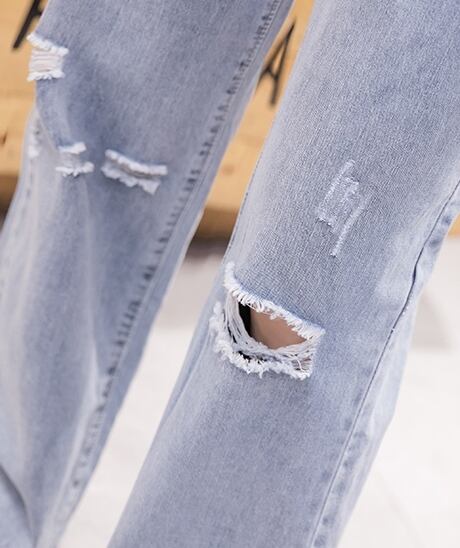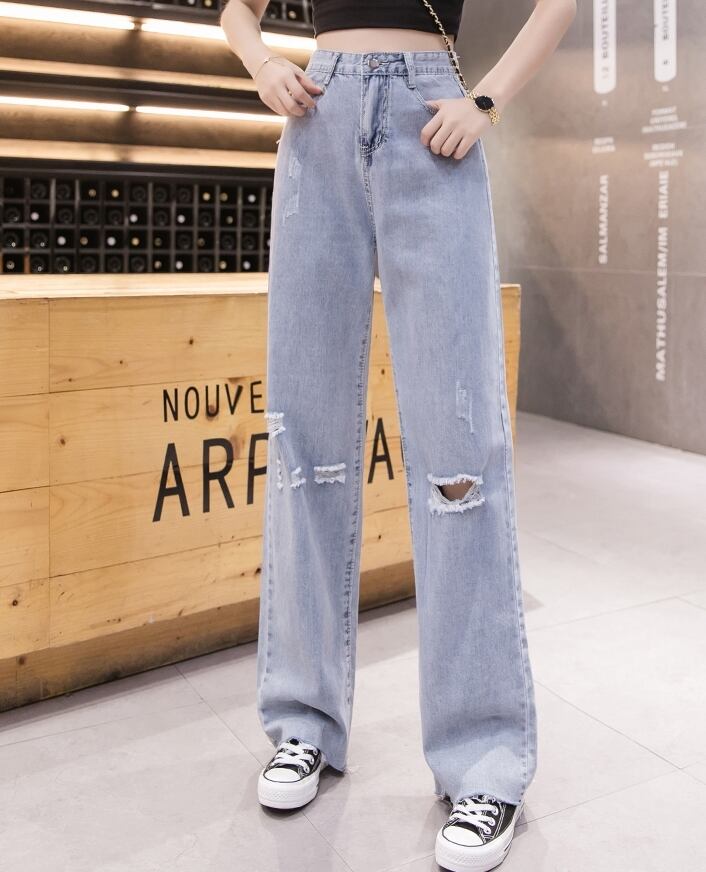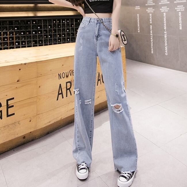 パンツ デニムパンツ ダメージ加工 ジーンズ ボトムス ハイウエスト ゆったり ストレート カジュアル トレンド デイリー お出掛け クール 春 夏