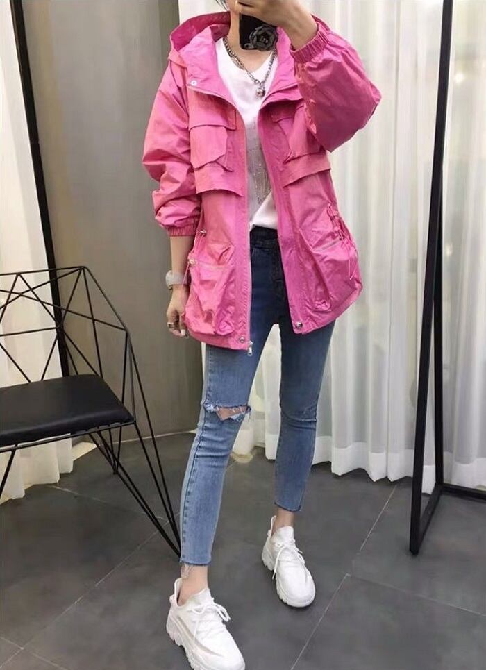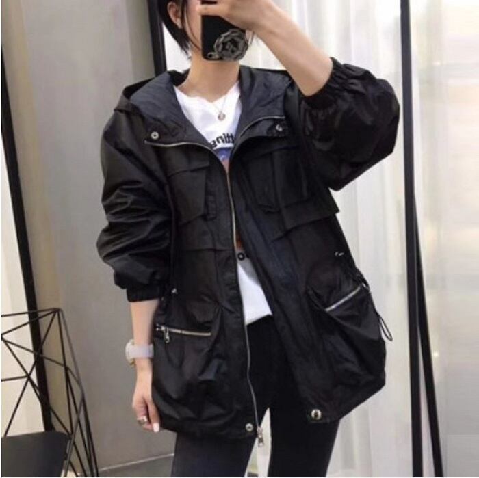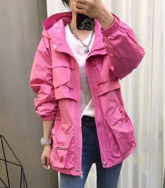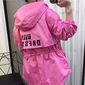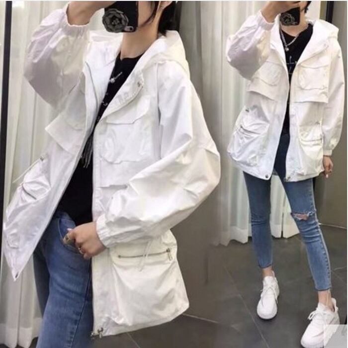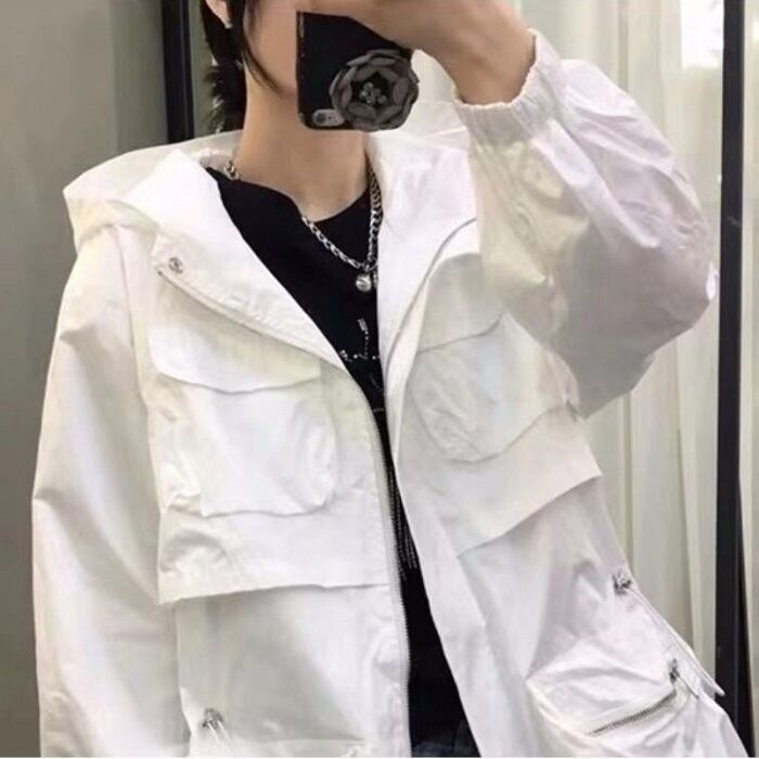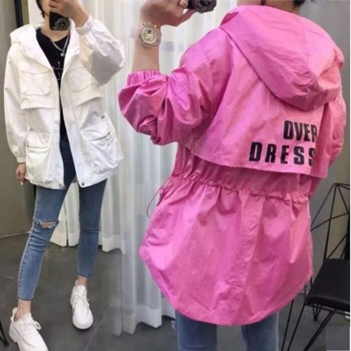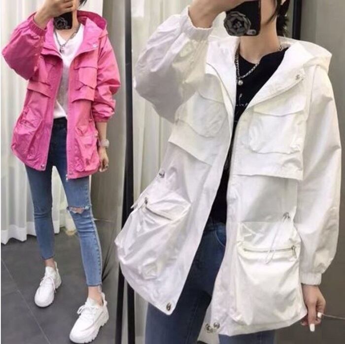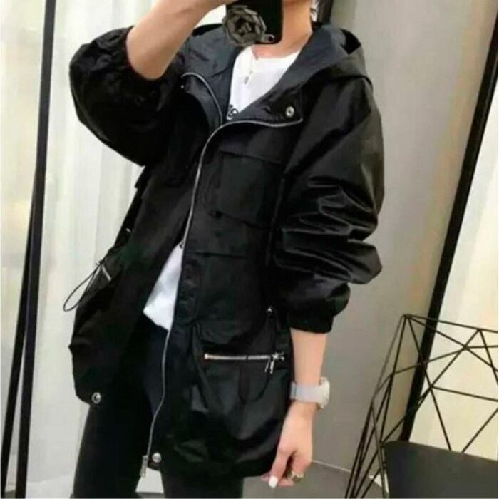 全3色 ウインドブレーカー ジャンパー モッズコート パーカー フード付き 中袖 無地 カジュアル アウトドア お出かけ スポーツ レジャー ピンク ホワイト ブラック