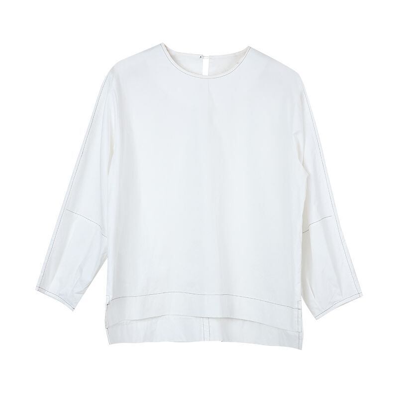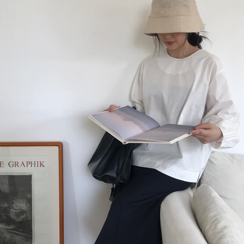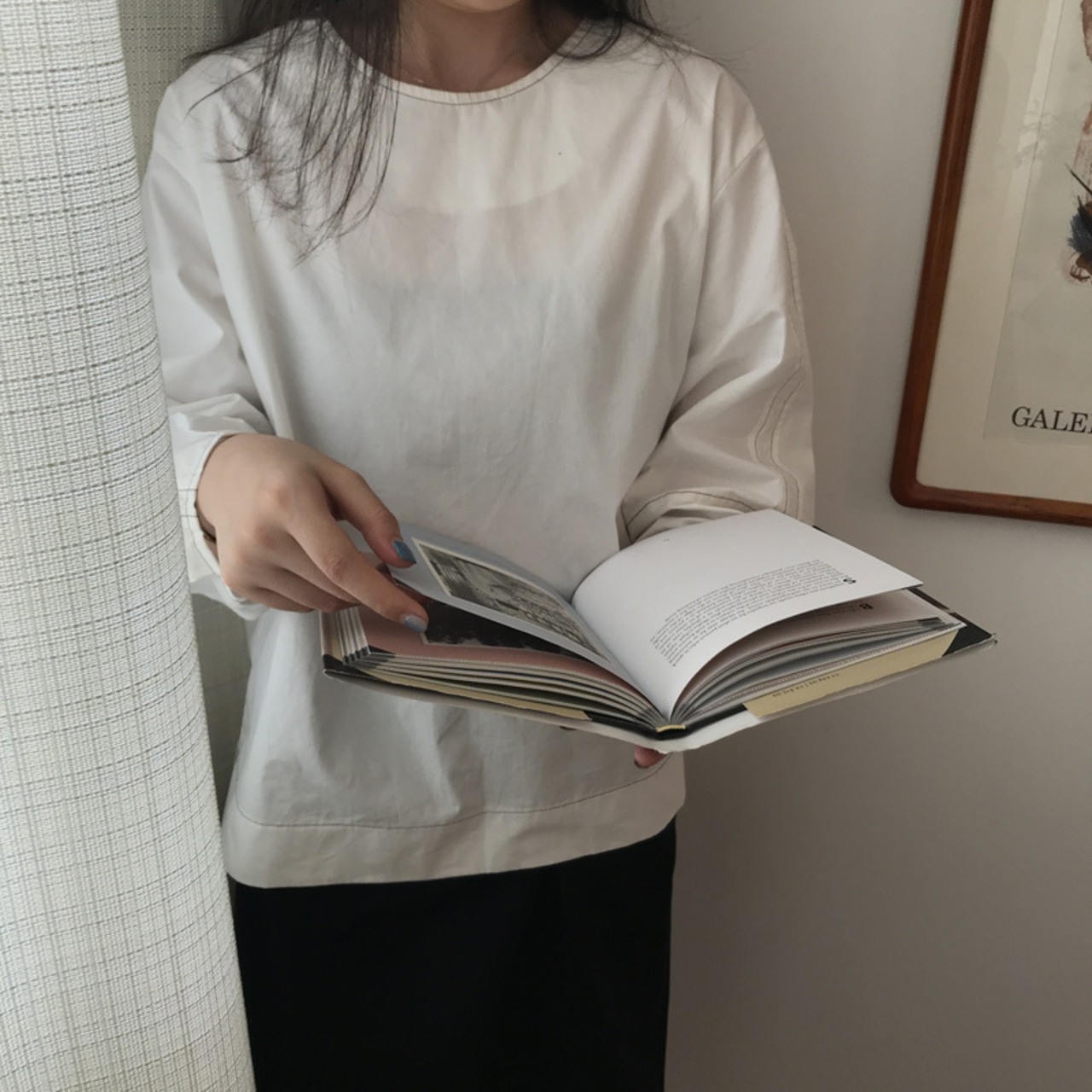 トップス カットソー Tシャツ シンプル ベーシック サイドスリット 大人カジュアル インナー 無地 長袖 ゆったり ラウンドネック 韓国ファッション デイリー 春 夏