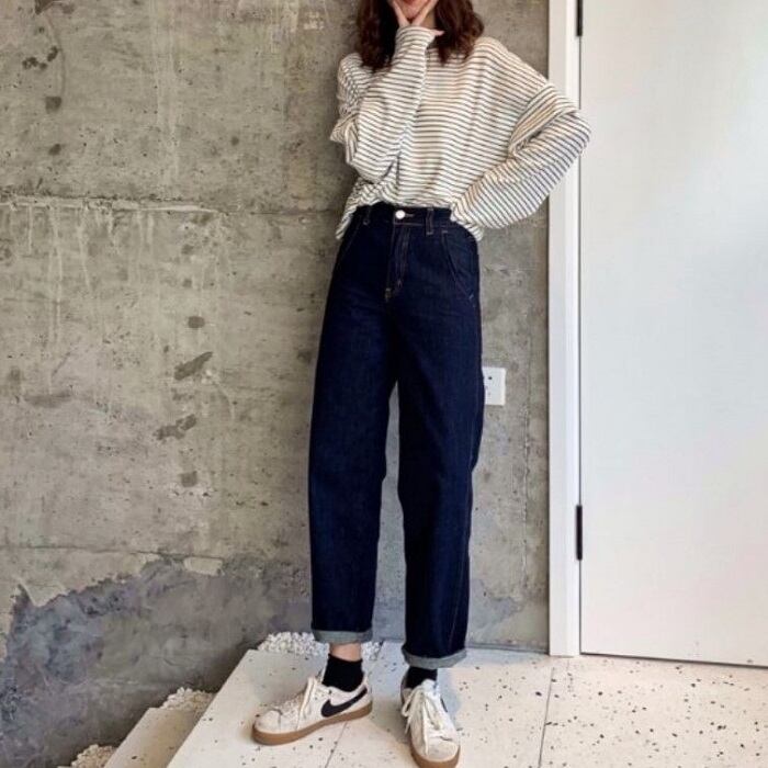 シンプルデザインのボーダーTシャツ。