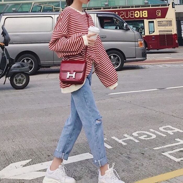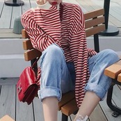 ボーダーTシャツとデニムパンツのセットアップです。