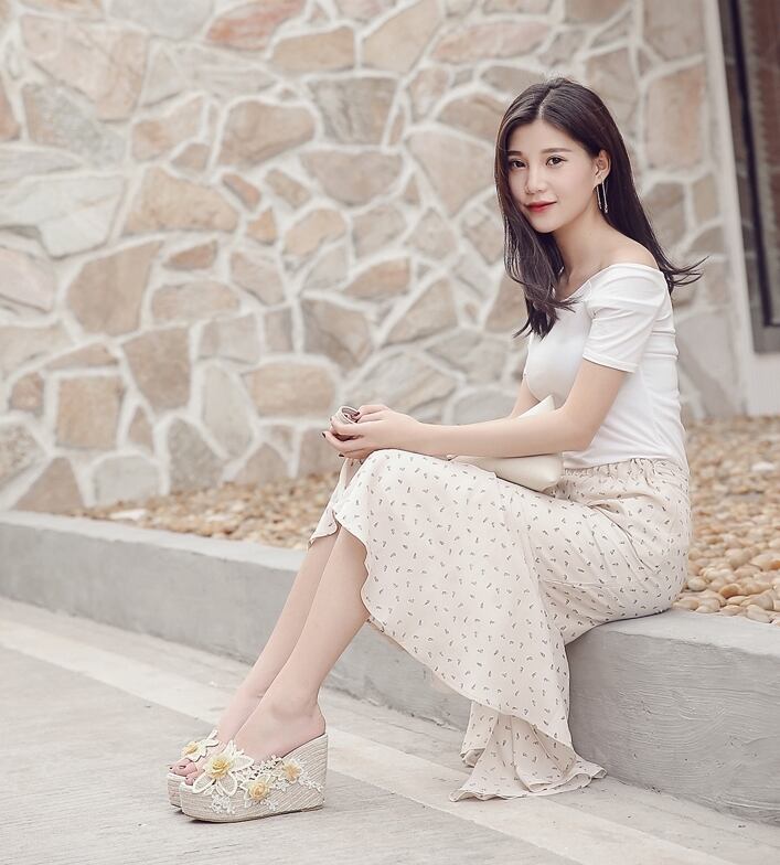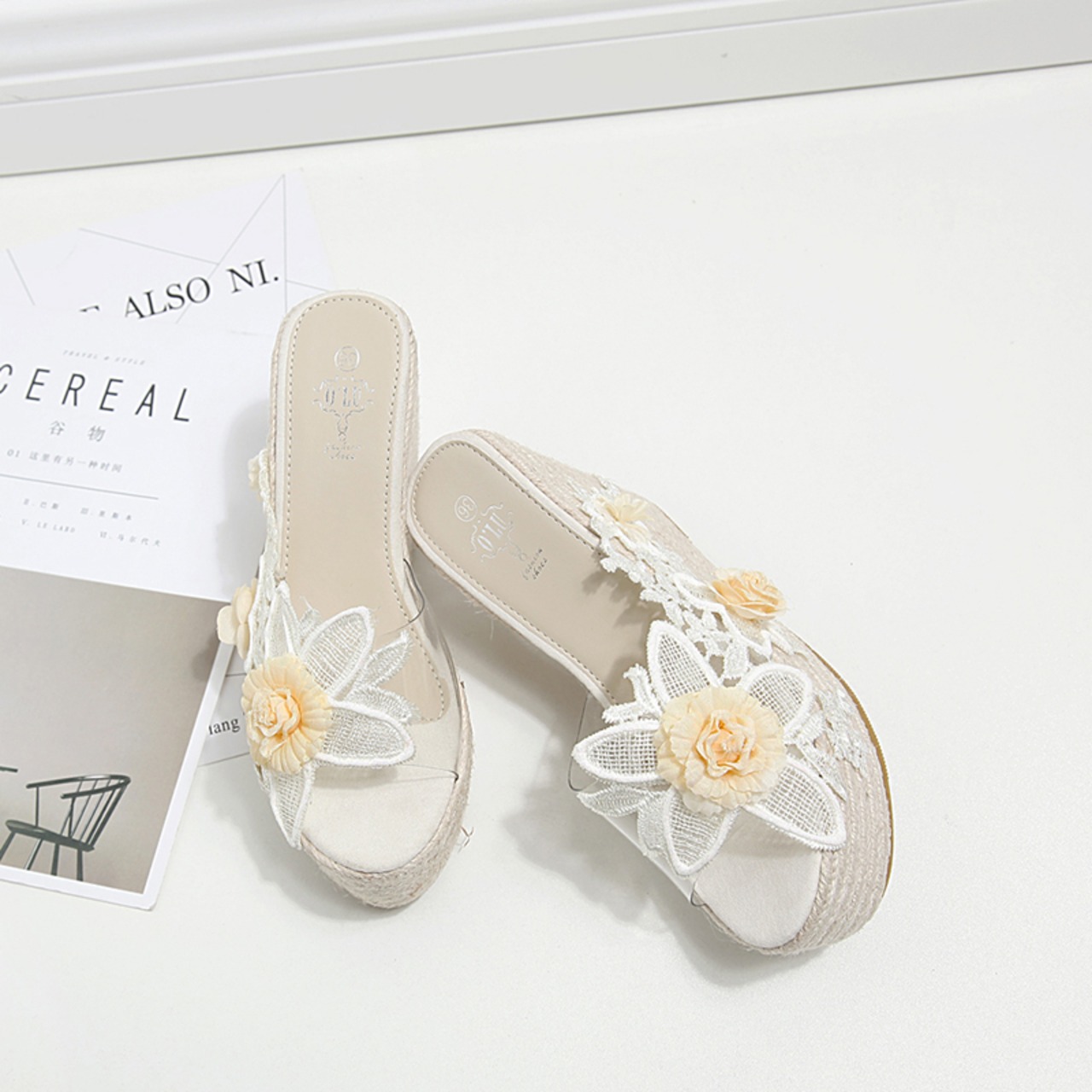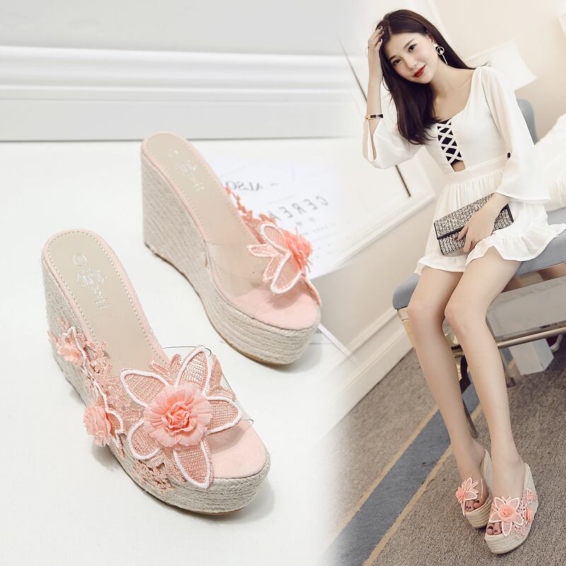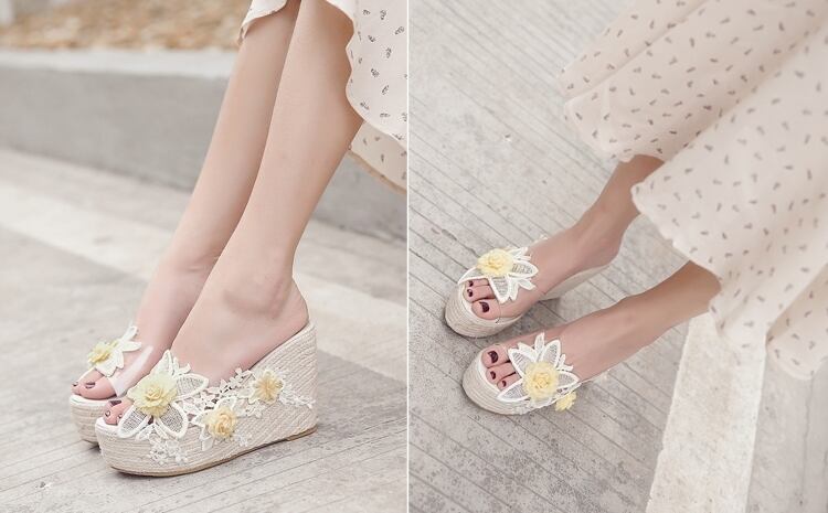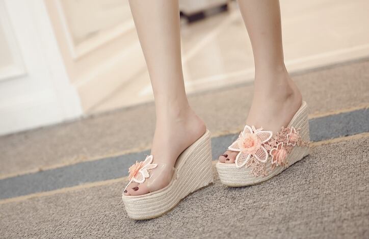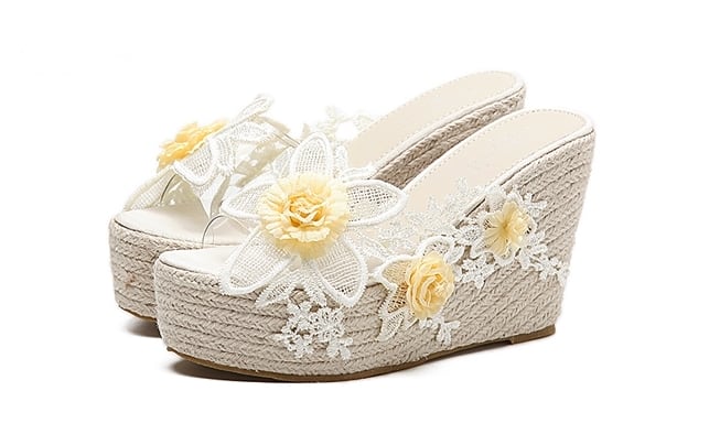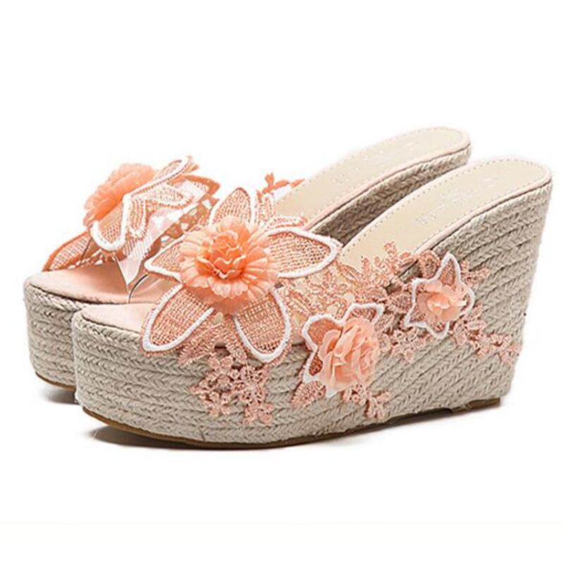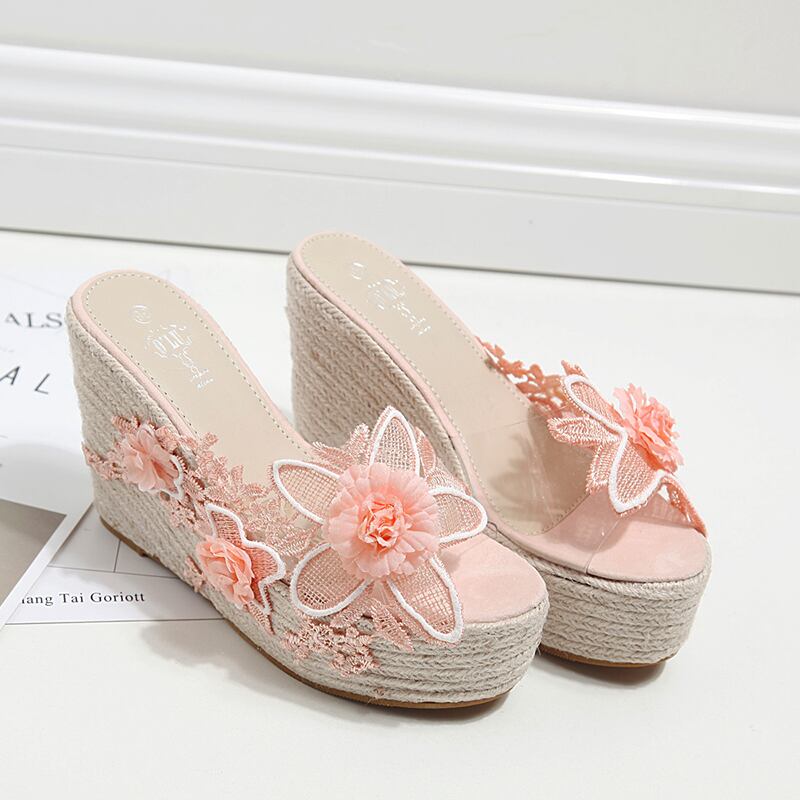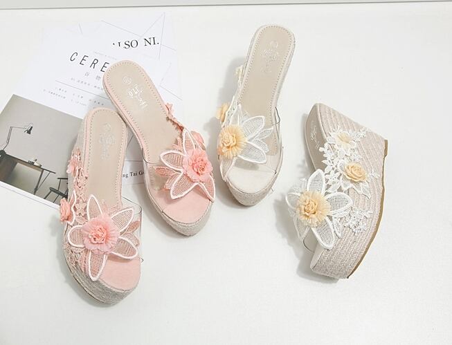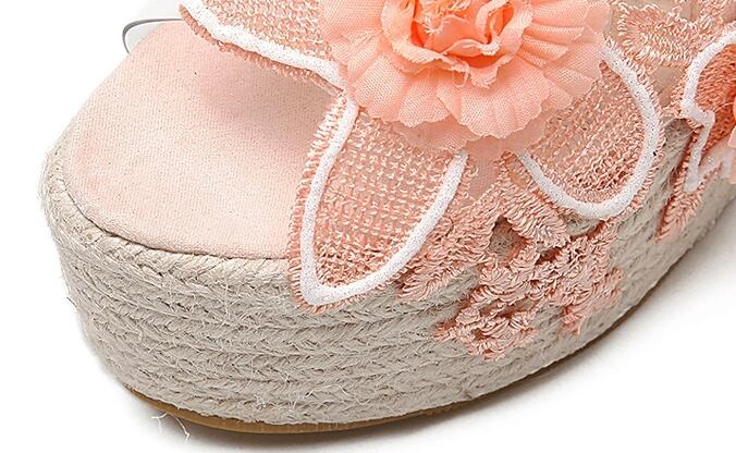 全2色 サンダル 厚底サンダル ウエッジヒール プラットフォームサンダル 花 レース 刺繍 可愛い ガーリー 上品 カジュアル きれいめ 防水 夏