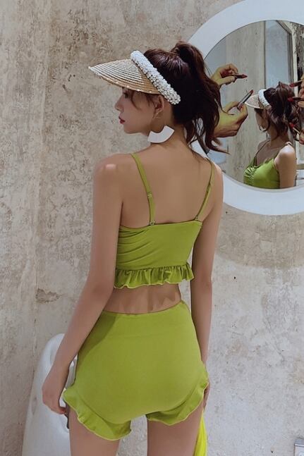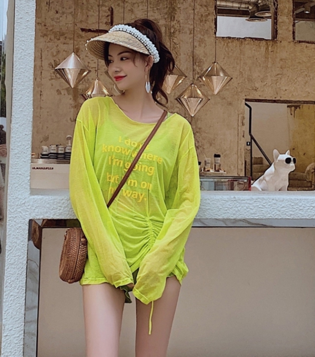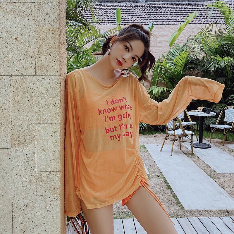 全2色 ビキニ 水着 スリーピース 3点セット タンキニ水着 体型カバー Tシャツ 長袖 フリル 海 プール ロゴ入り 英字 ビーチ バカンス リゾート 大人 リボン 夏