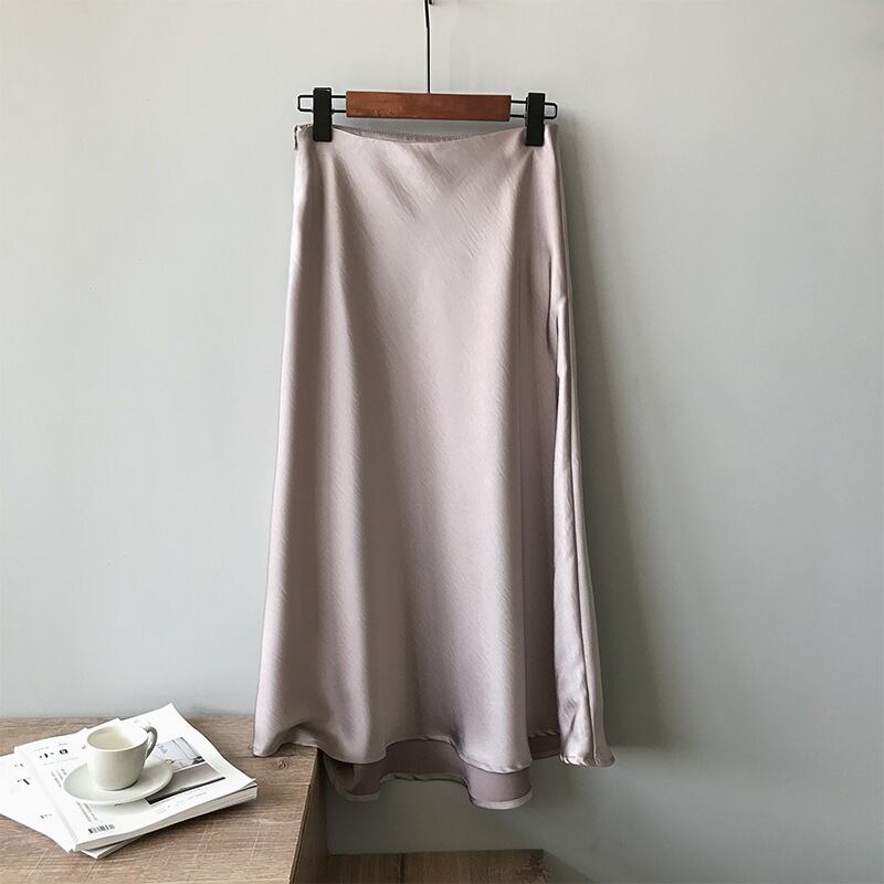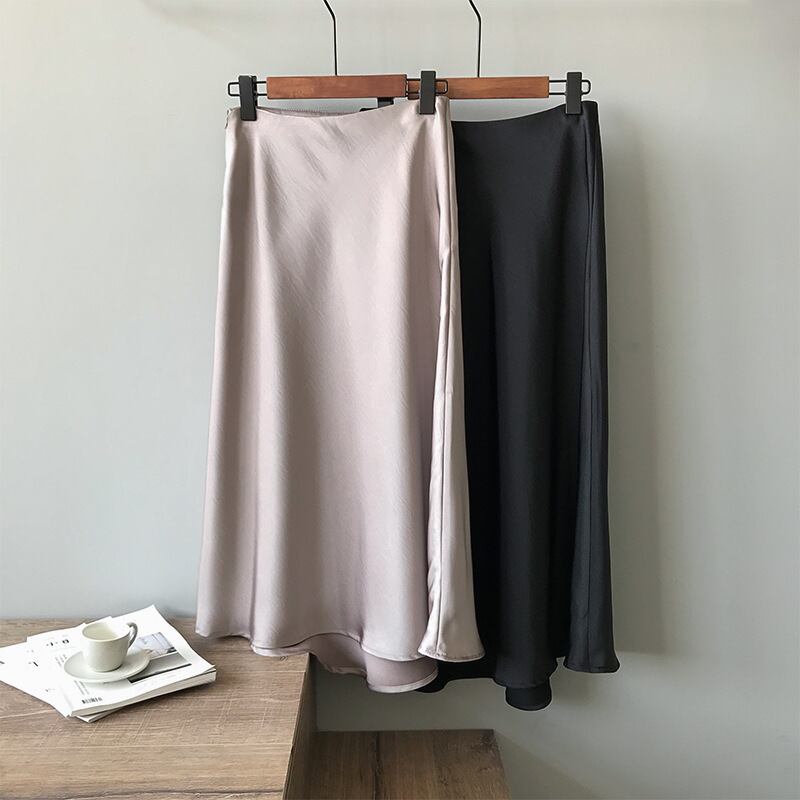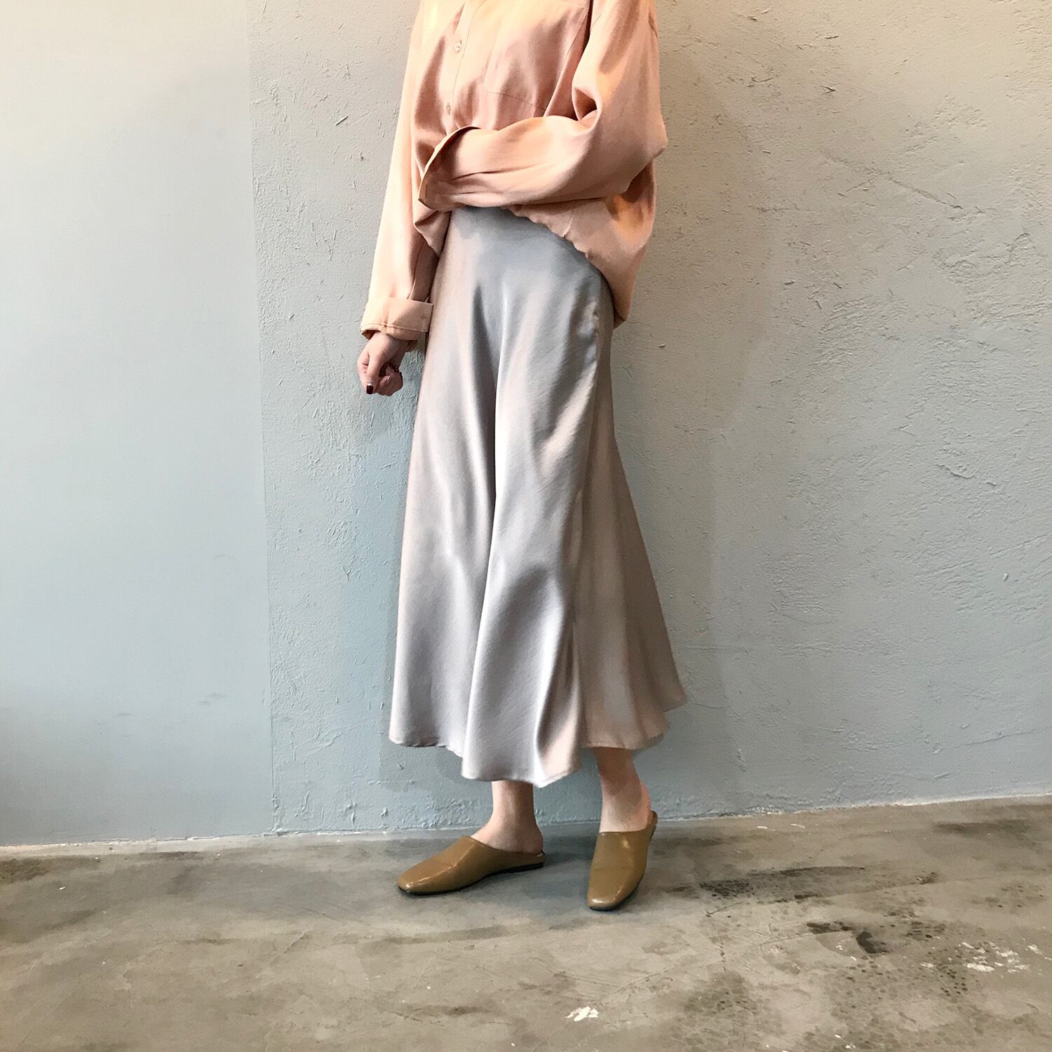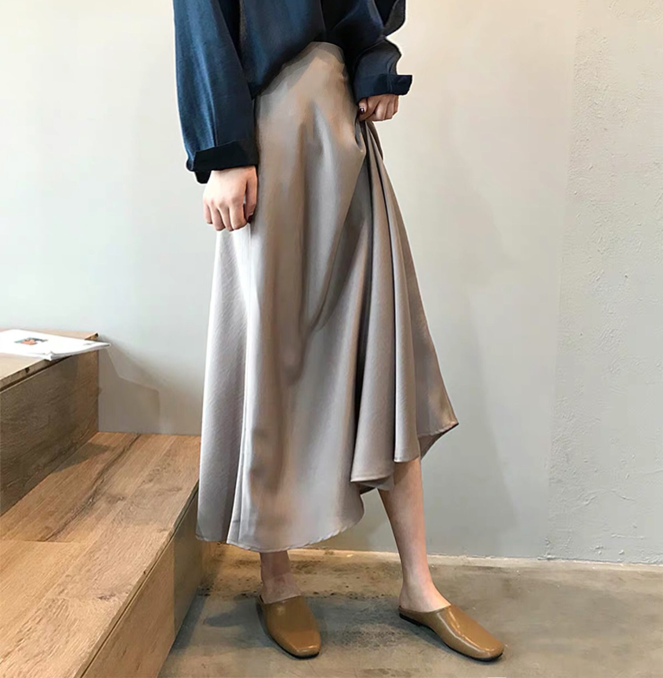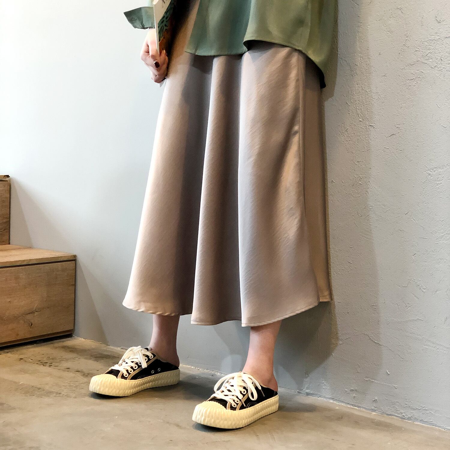 全2色 スカート ボトムス ロング丈 フレア ハイウエスト 光沢 とろみ素材 無地 大人可愛い 上品 エレガント カジュアル きれいめ シック お呼ばれ 女子会 デート 夏 春