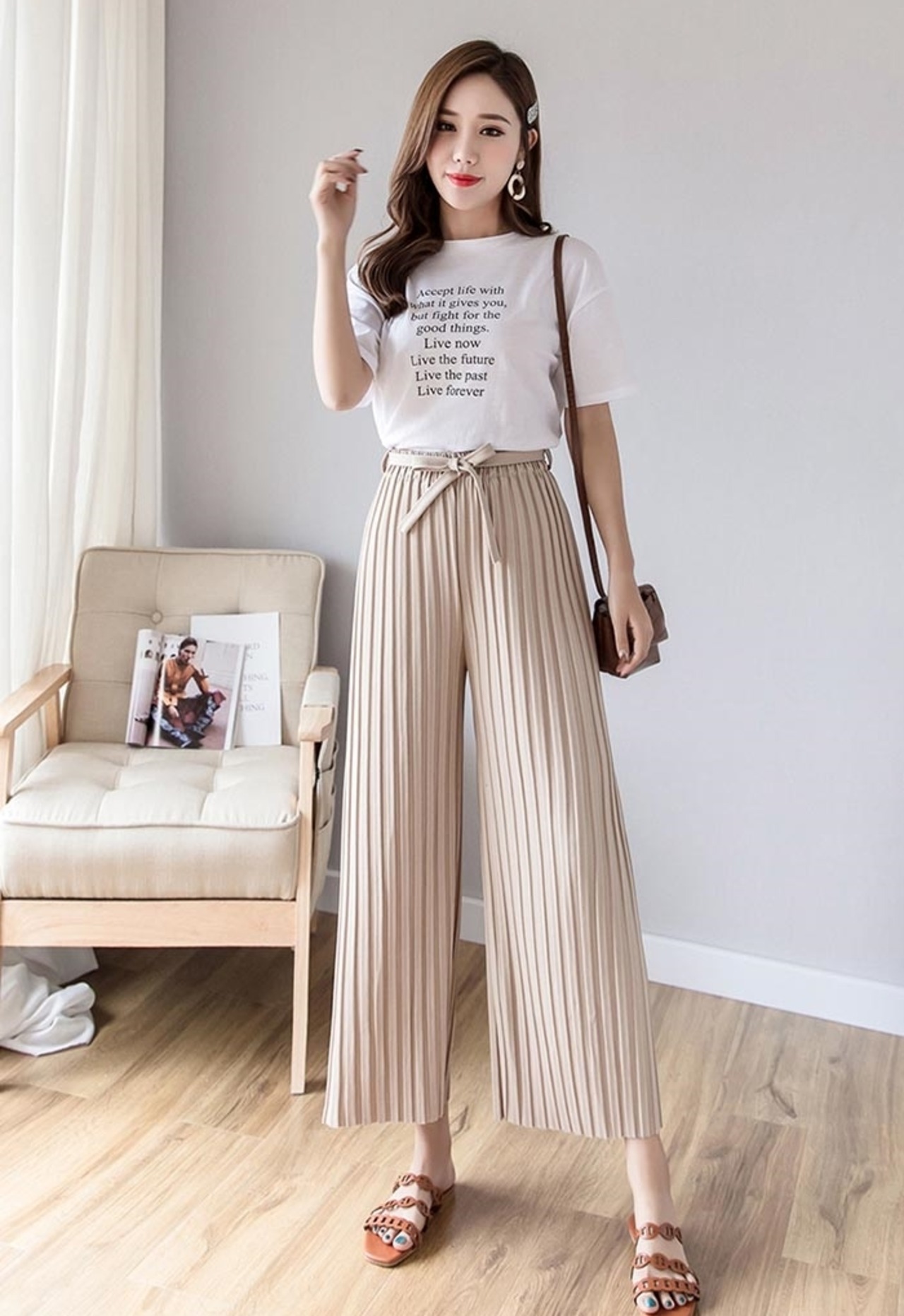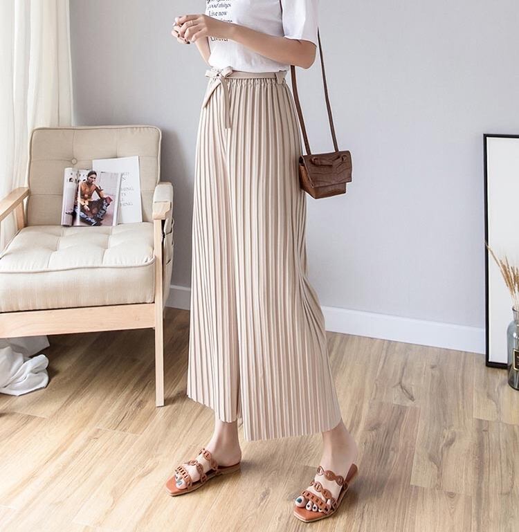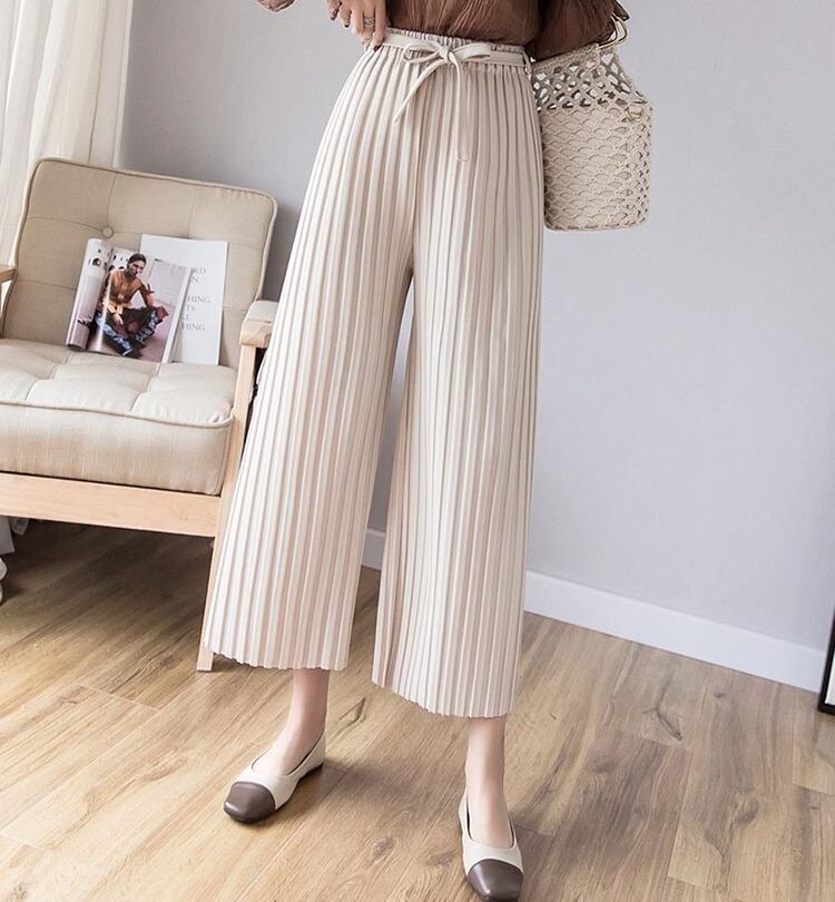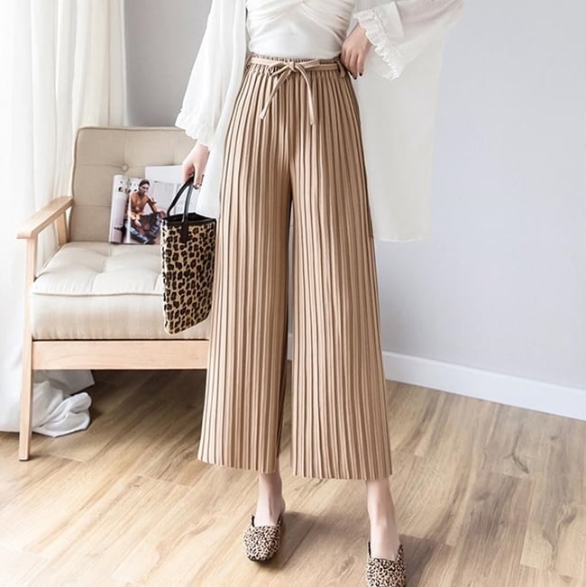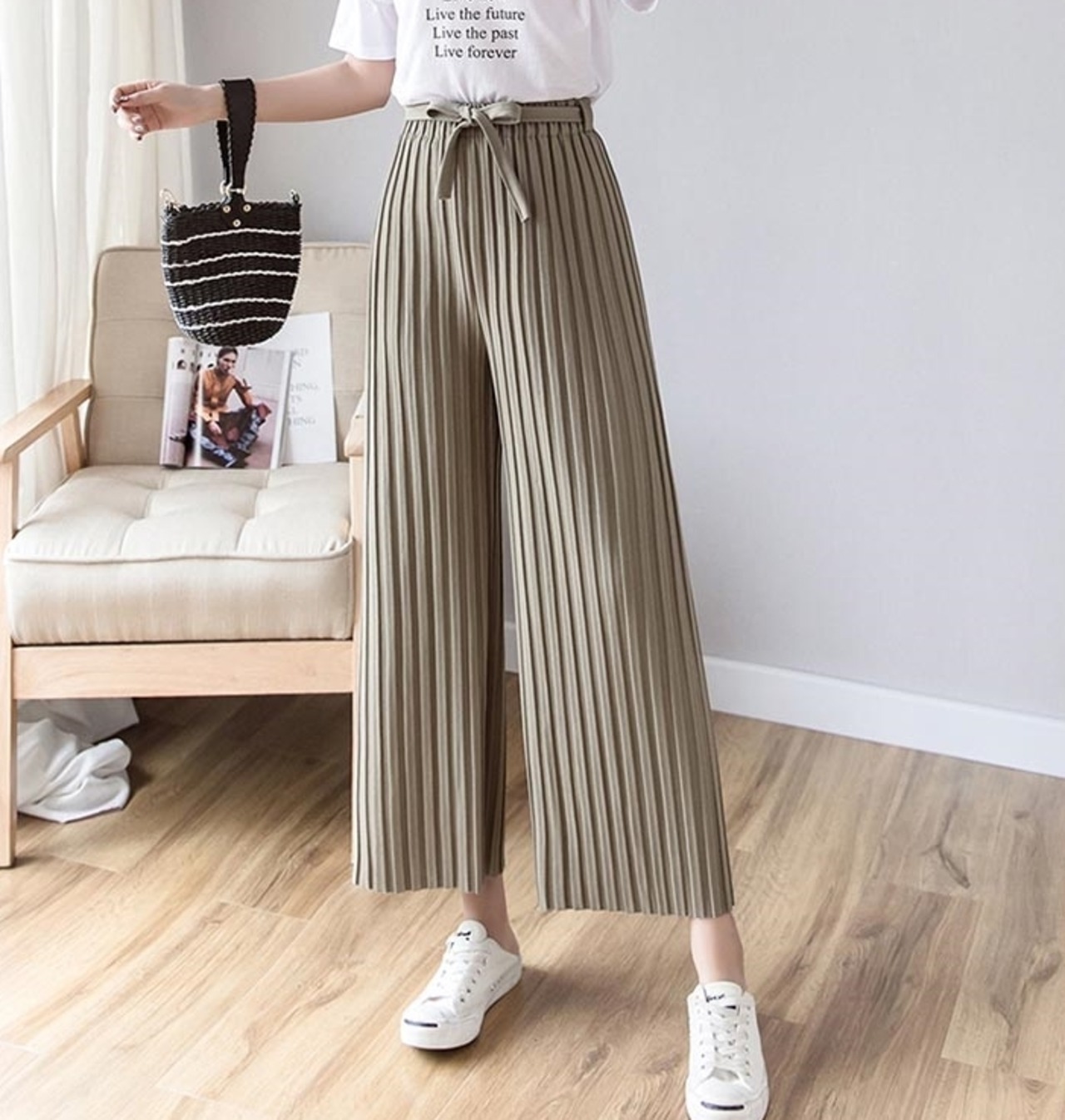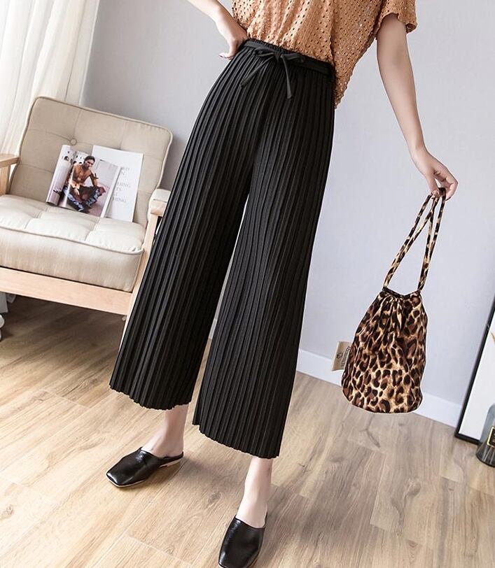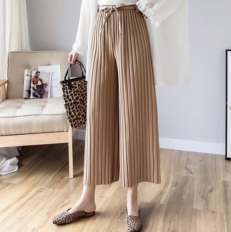 全5色 パンツ プリーツ ワイドパンツ ハイウエスト ゆったり 8分丈 アンクル丈 リボン トレンド 上品 韓国ファッション カジュアル きれいめ 大人 お出かけ 韓国ファッション 春 夏