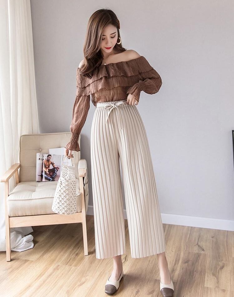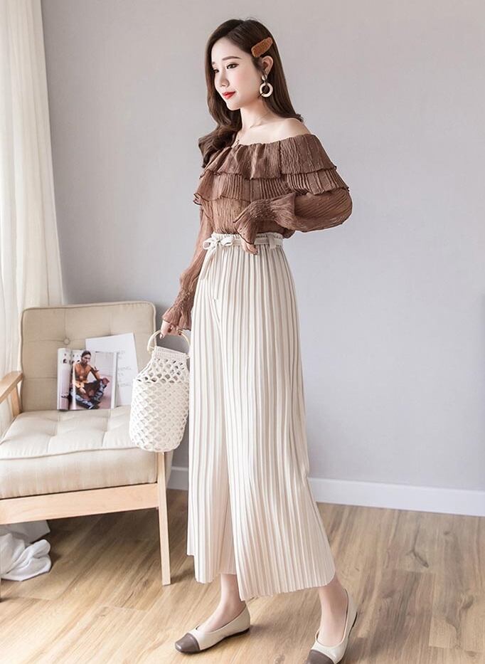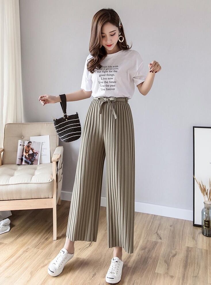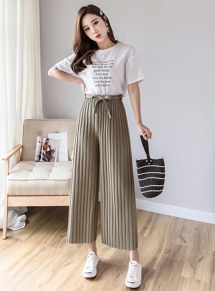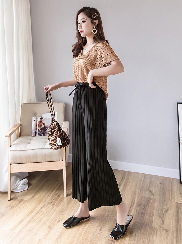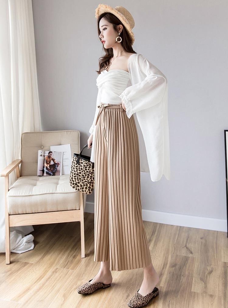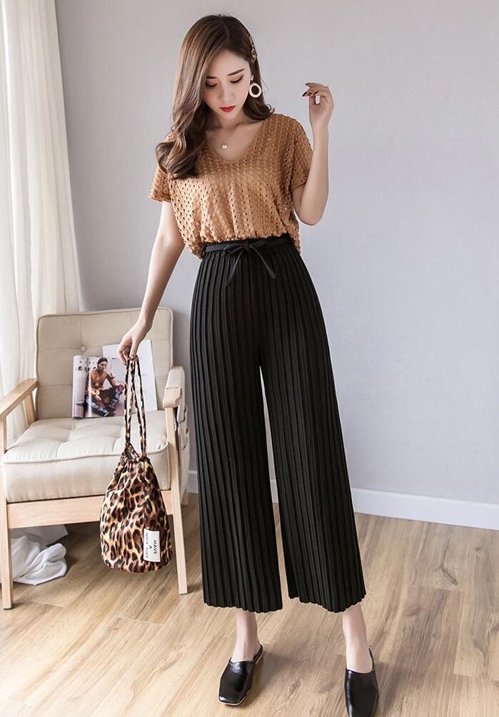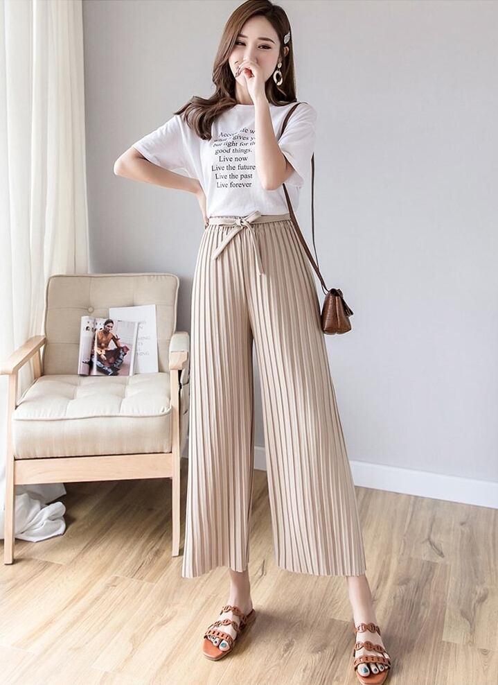全5色 パンツ プリーツ ワイドパンツ ハイウエスト ゆったり 8分丈 アンクル丈 リボン トレンド 上品 韓国ファッション カジュアル きれいめ 大人 お出かけ 韓国ファッション 春 夏