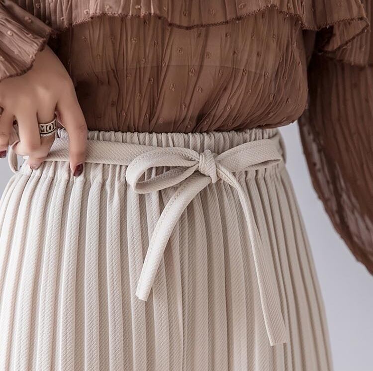 プリーツ加工が縦ラインを強調し、すっきりとしたラインに仕上げます♪