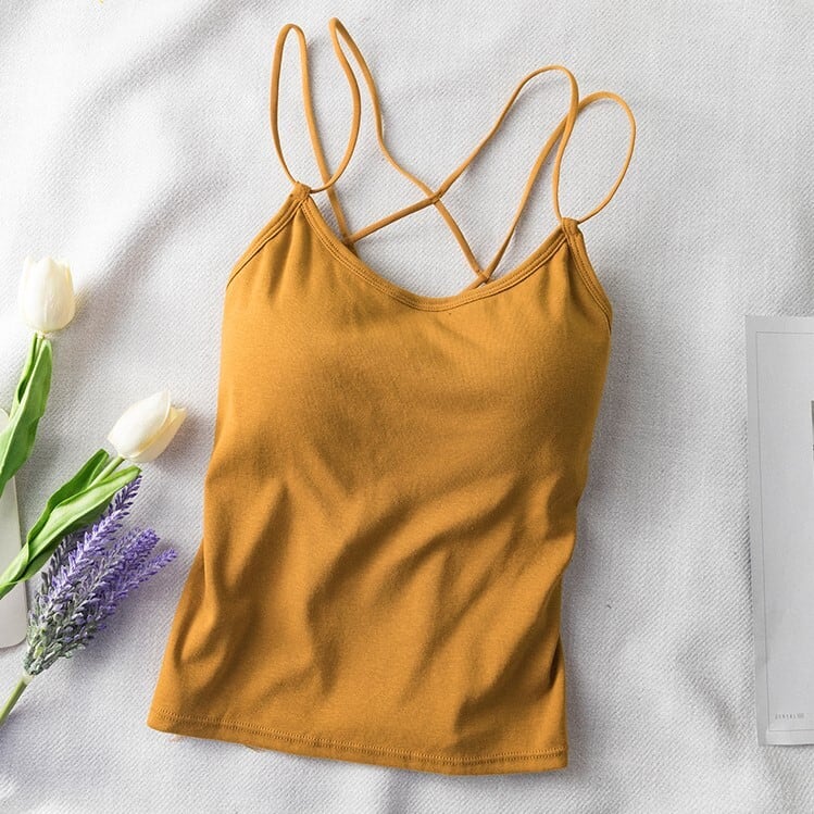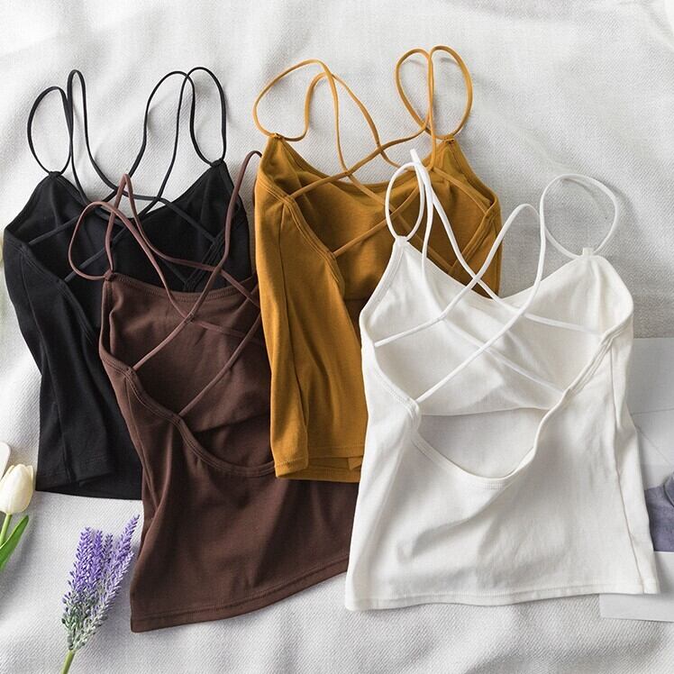 全11色2種 タンクトップ ブラトップ ダブルストラップ ブラカップ トップス インナー カジュアル デイリー 普段着 夏