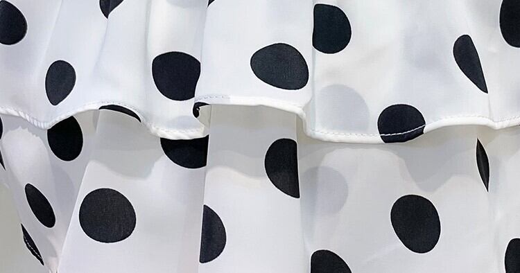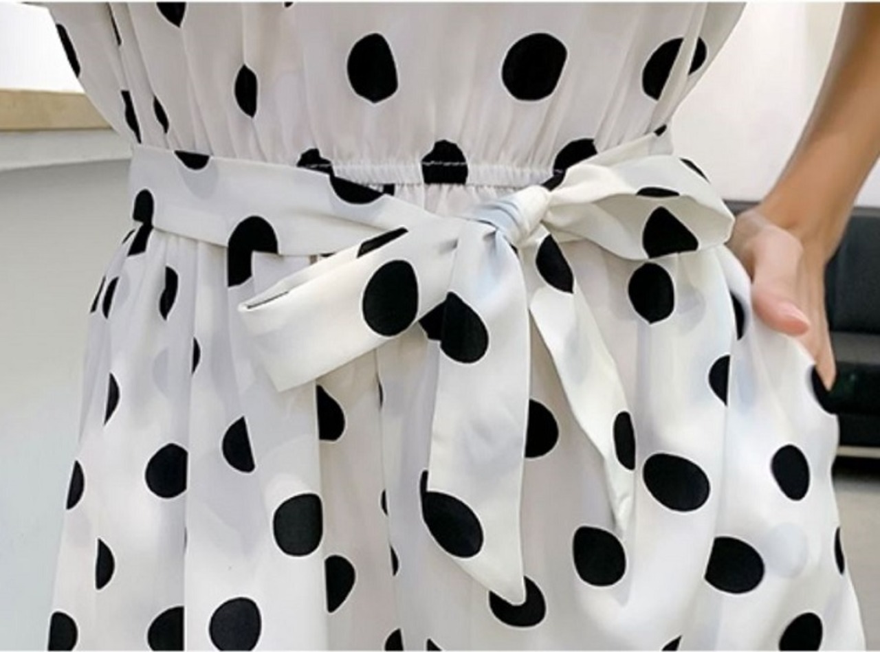 ドット柄が夏らしく可愛いミニ丈のジャンプスーツ。