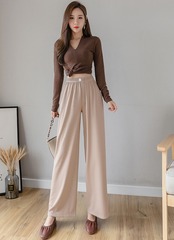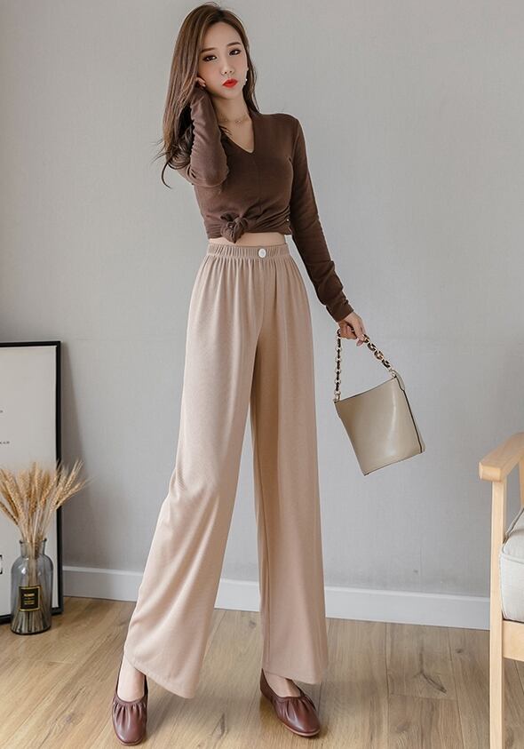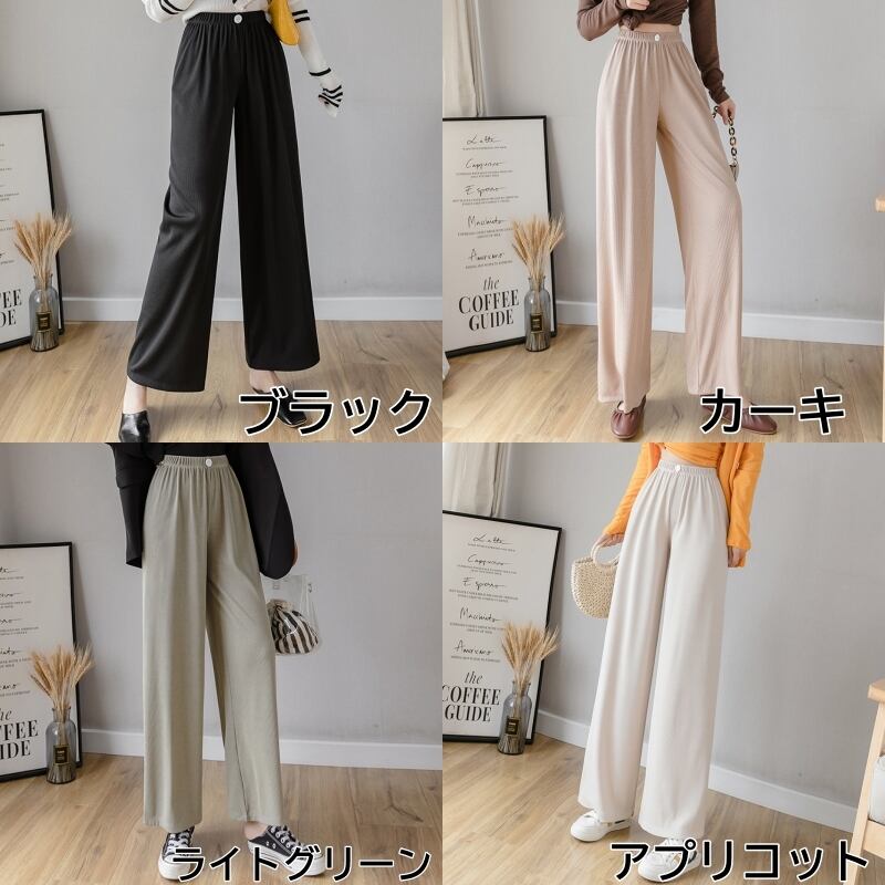 全4色 ワイドパンツ ロング丈 無地 ガウチョパンツ ハイウエスト スカーチョ ベイクドカラー くすみカラー オールシーズン 秋冬 春 お出かけ ルームウェア 女子会 ヨガ フィットネス こなれ感 カジュアル