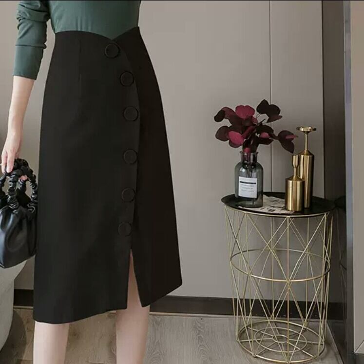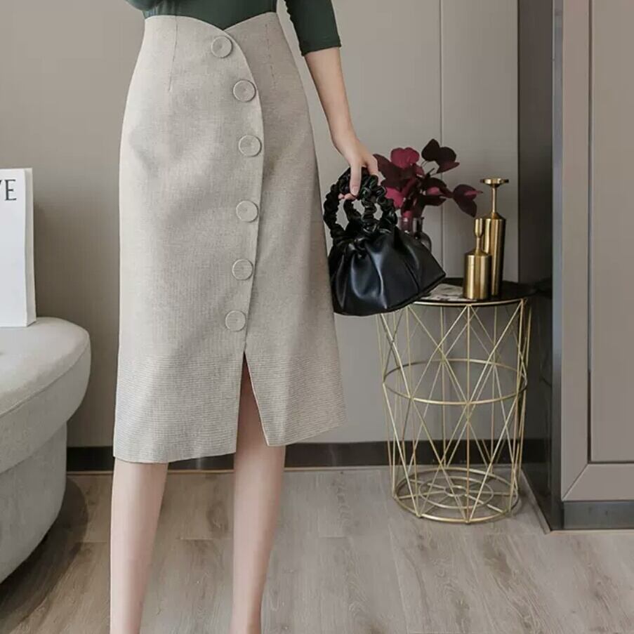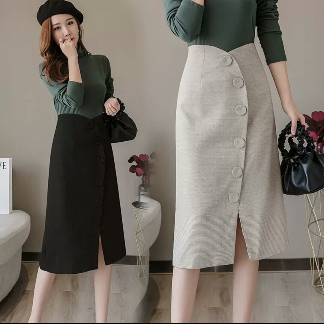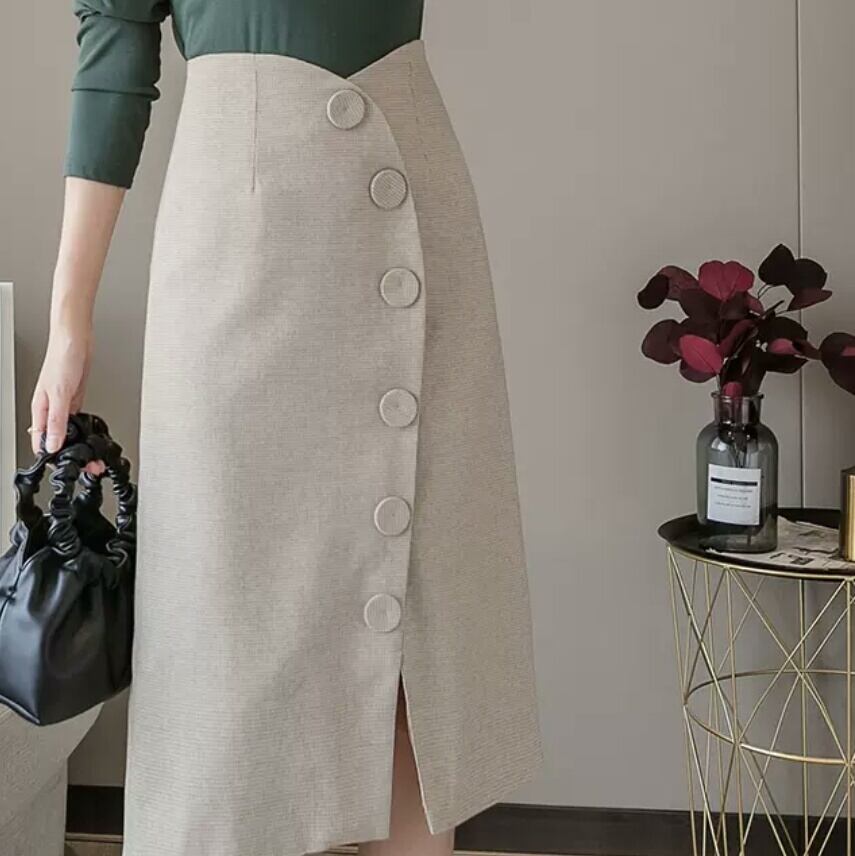 全2色 ミドル丈 スリット ボタン スカート ハイウエスト 大人 カジュアル 可愛い キレイめ オフィス 上品 お出かけ お買い物 デート 女子会 春 夏 通学 学生 通勤 韓国ファッション