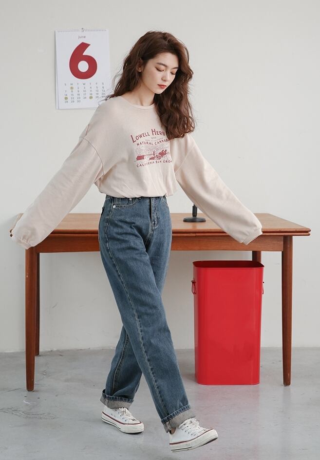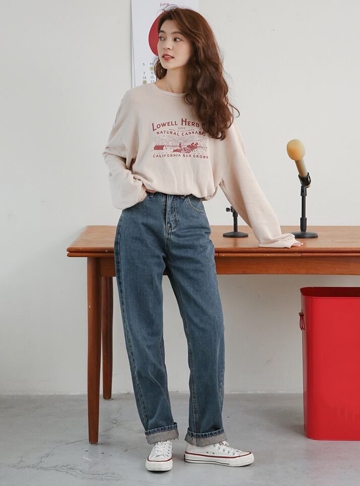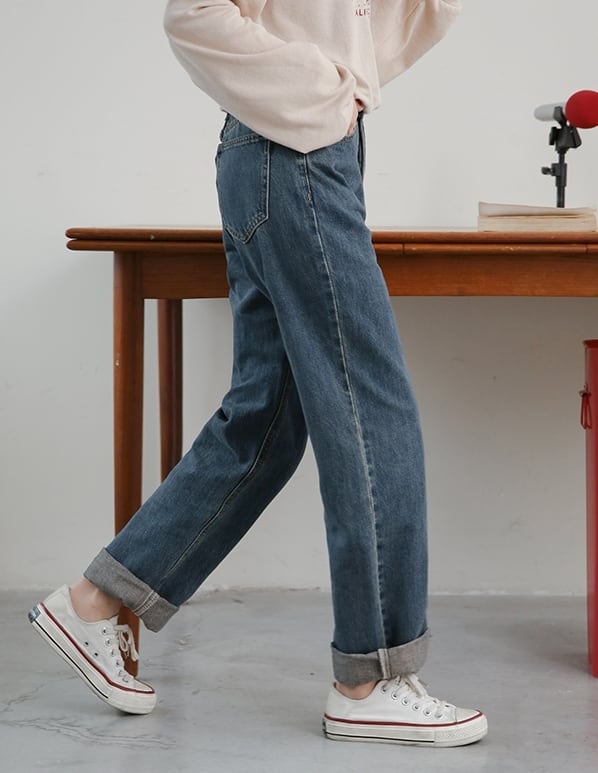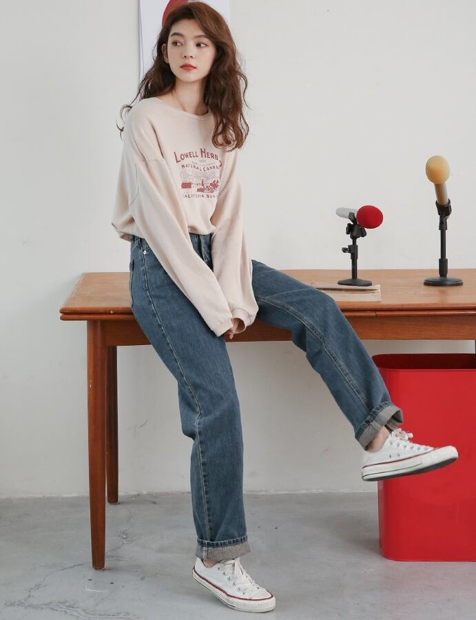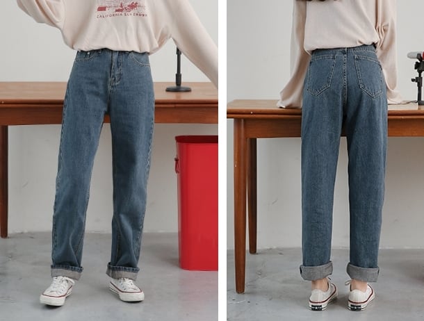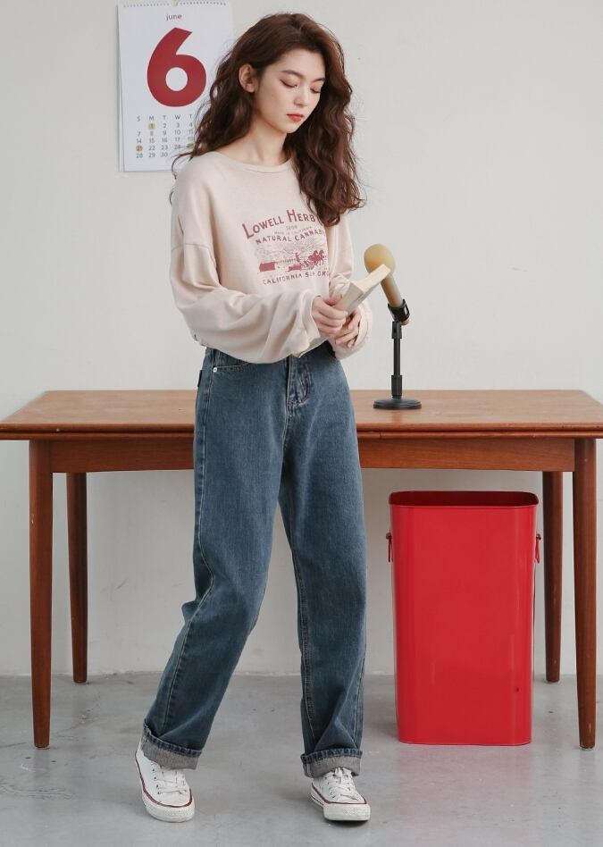 デニムパンツ パンツ ボトムス ジーンズ ハイウエスト ワイドパンツ ゆったりめ シンプル カジュアル ラフ デイリー 大人 メンズライク ストレート 通学 韓国ファッション ロールアップ レトロ 春 夏