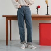 シンプルながらもおしゃれに着こなせるデニムパンツです。
