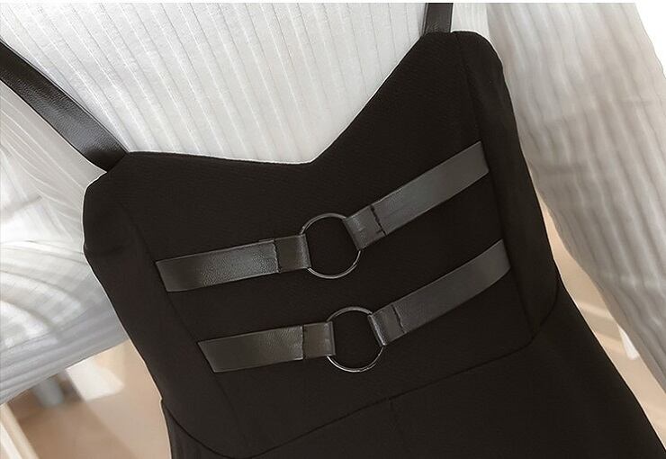 サロペットの細いストラップが大人っぽいデザイン。