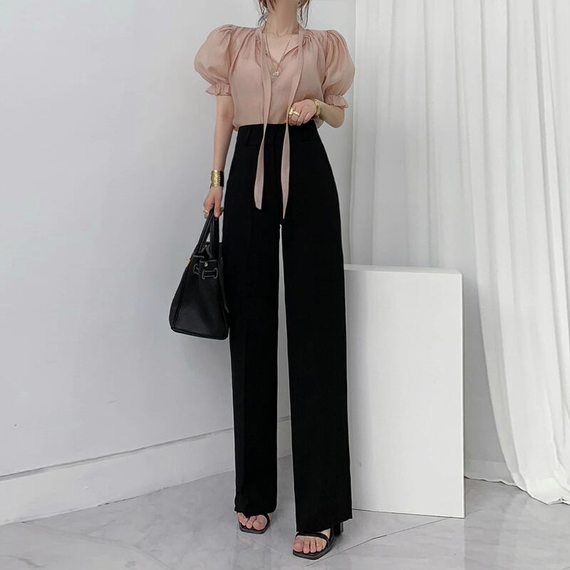 ハイウエストで脚長&スタイルアップ効果抜群のワイドパンツ。