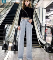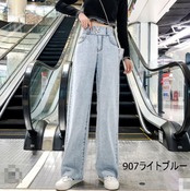 全2色2種 デニムパンツ ボトムス ワイドパンツ ハイウエスト ゆったり カジュアル お買い物 ユニーク 通学 おしゃれ お出掛け ジーンズ 大人 デイリー ケミカル 春 夏