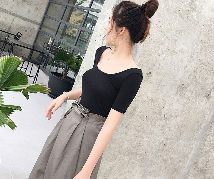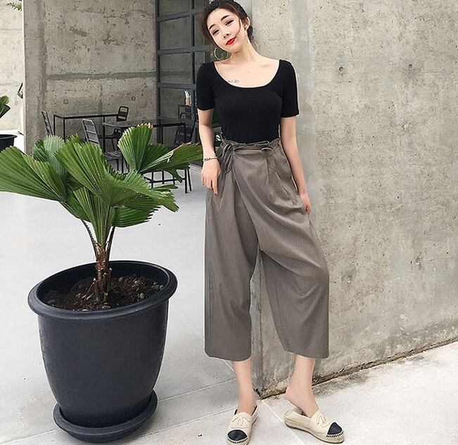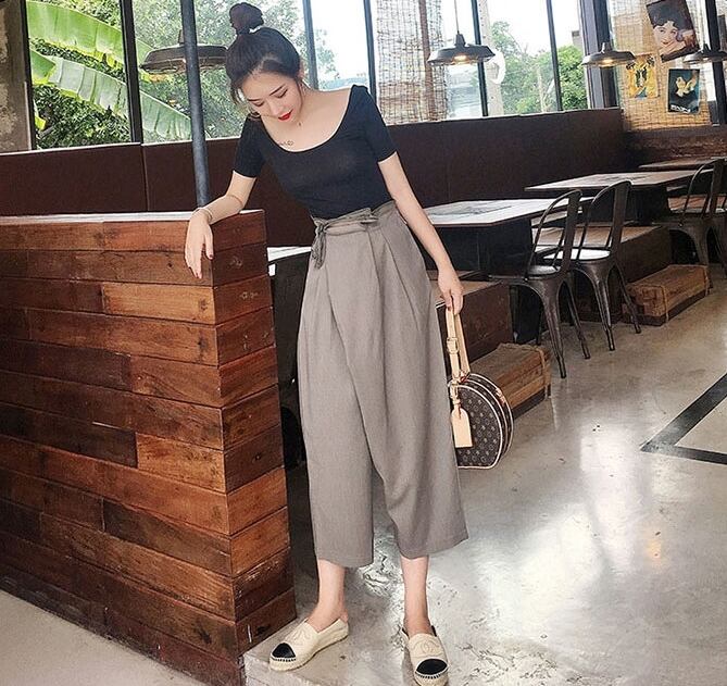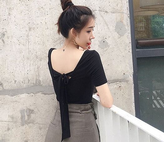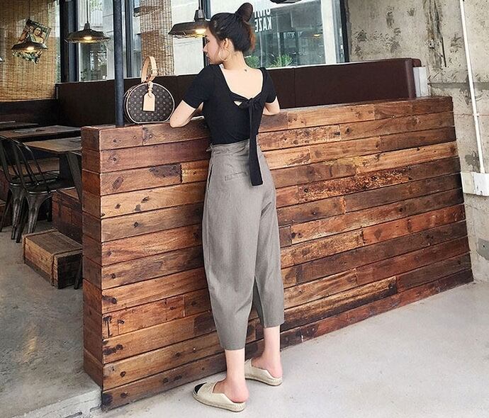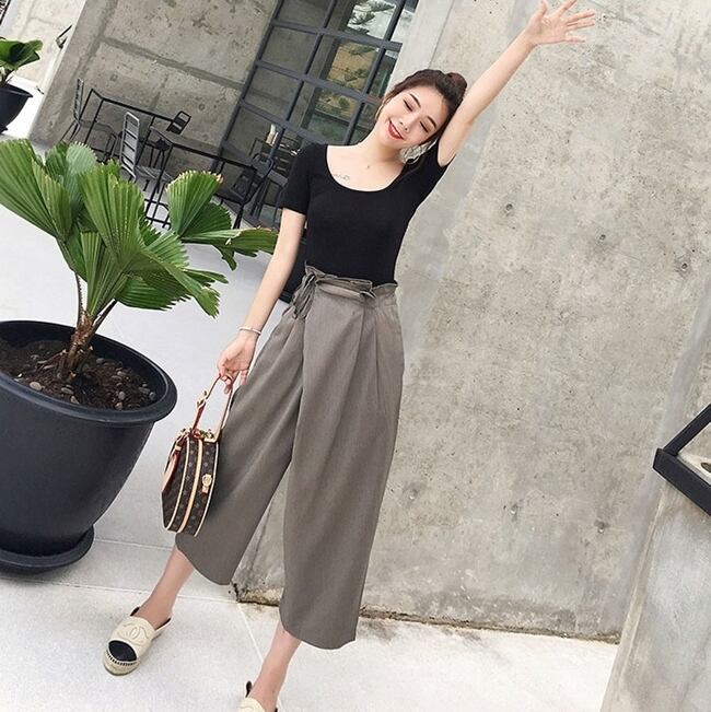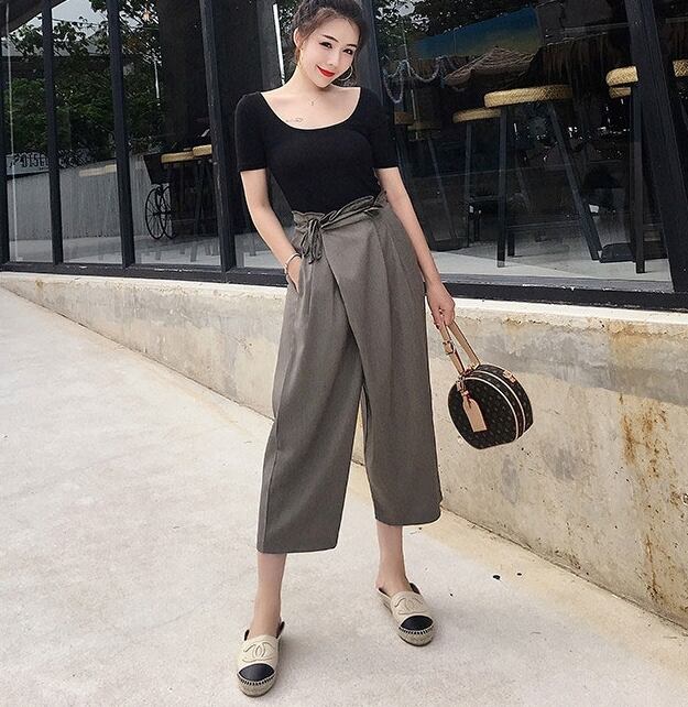 セットアップ ツーピース Tシャツ ブラウス ワイドパンツ ガウチョパンツ カシュクール バックリボン ハイウエスト 半袖Uネック バックシャン カジュアル 春 夏