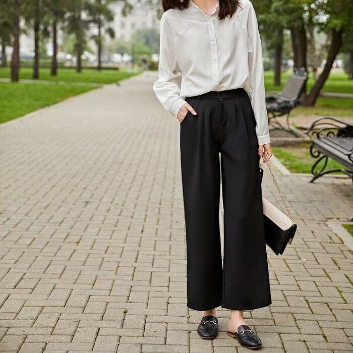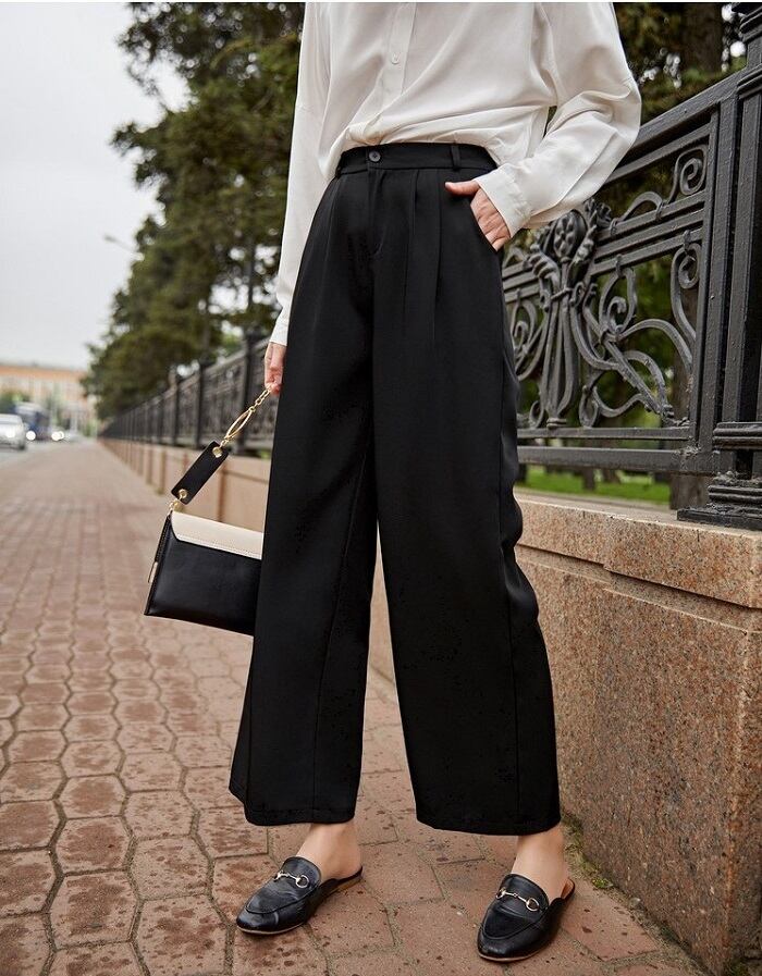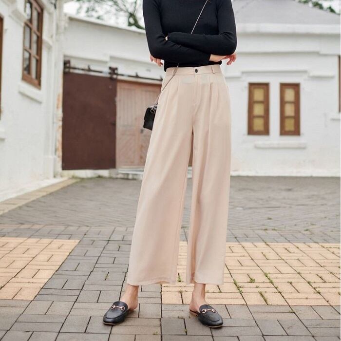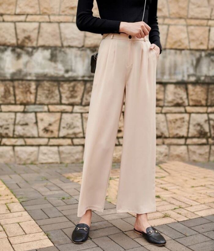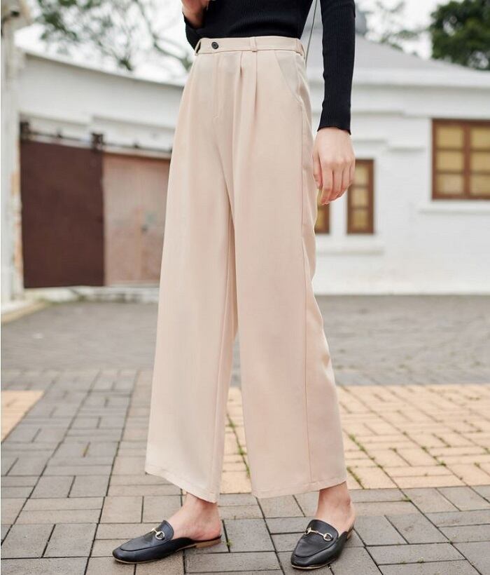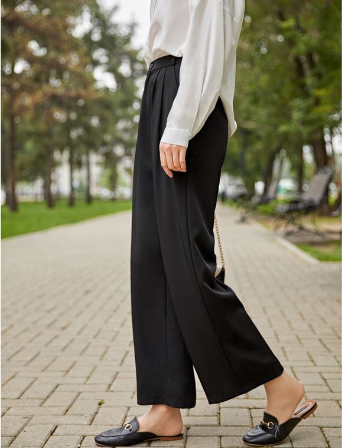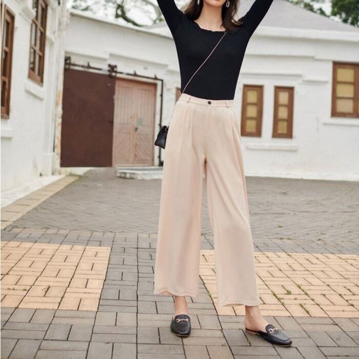 しなやかな素材感で上品な印象のアンクル丈ワイドパンツ。