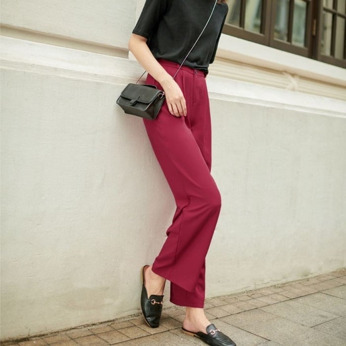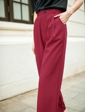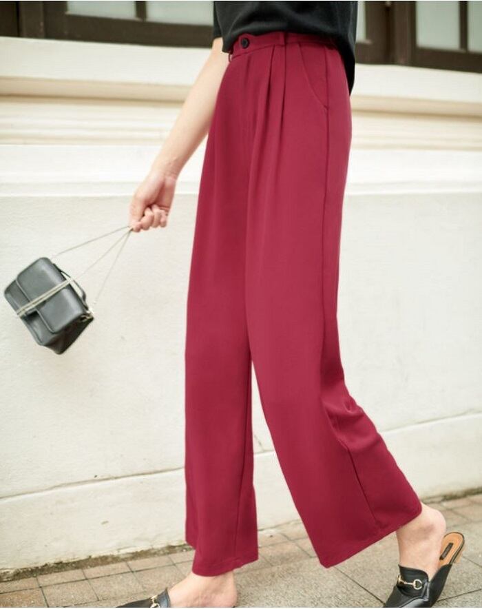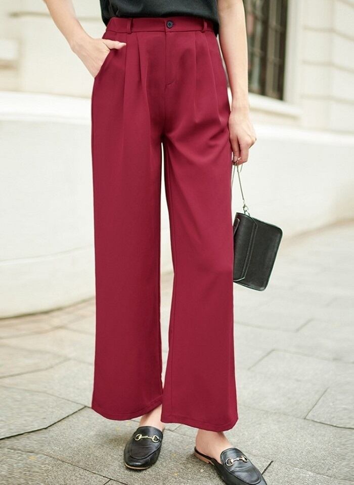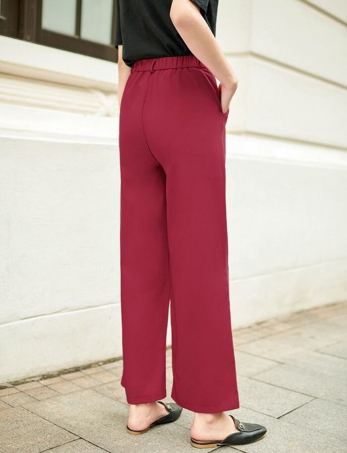 全3色 ワイドパンツ ハイウエスト アンクル丈 無地 ゆったり きれいめ オフィス お出かけ デート ブラック ベージュ レッド