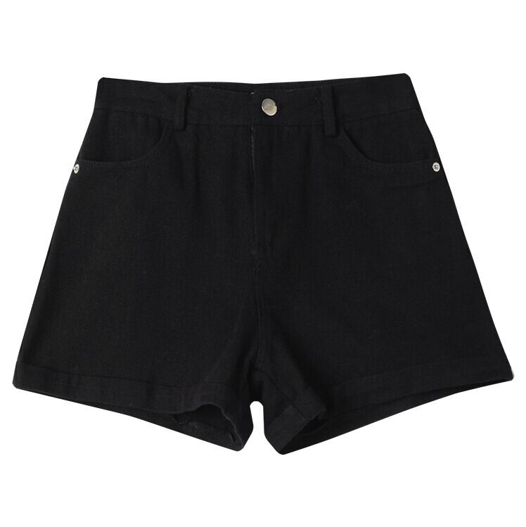 全3色 デニムパンツ ショートパンツ ハイウエスト ウエストゴム 無地 スポーティ カジュアル お出かけ デイリー アプリコット ブラック ブルー