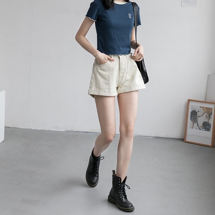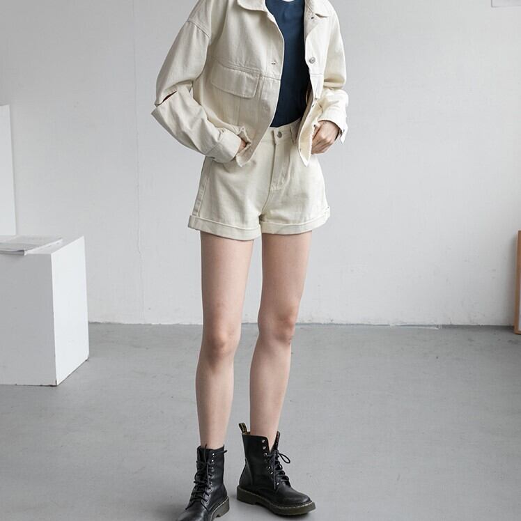ロールアップがアクセント♪シンプルデザインのショートパンツ。