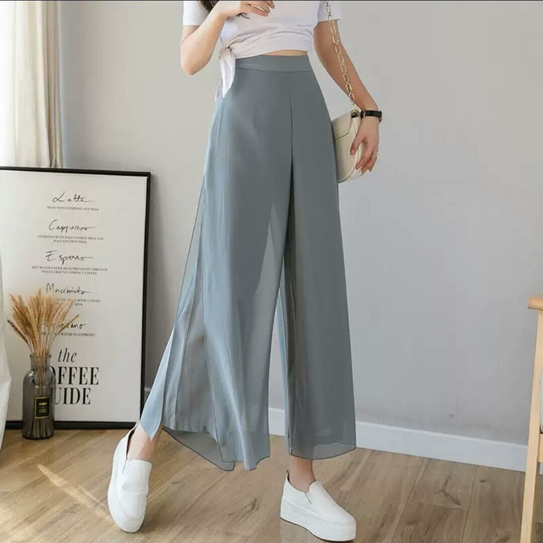 全3色 シフォン ハイウエスト ワイド パンツ 無地 シンプル ふんわり 涼しげ 大人 カジュアル キレイめ 可愛い お出かけ お買い物 デート 女子会 春 夏 通学 学生 通勤 韓国ファッション