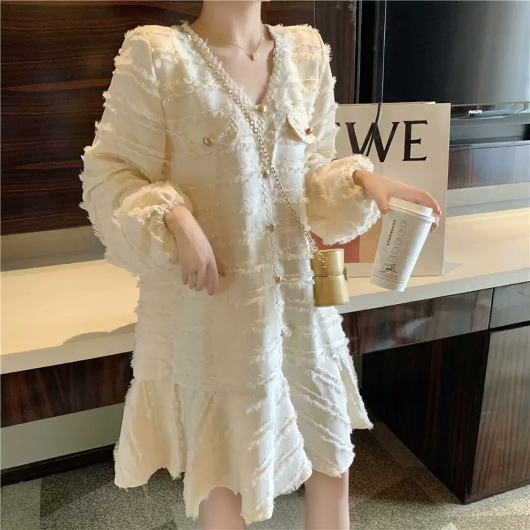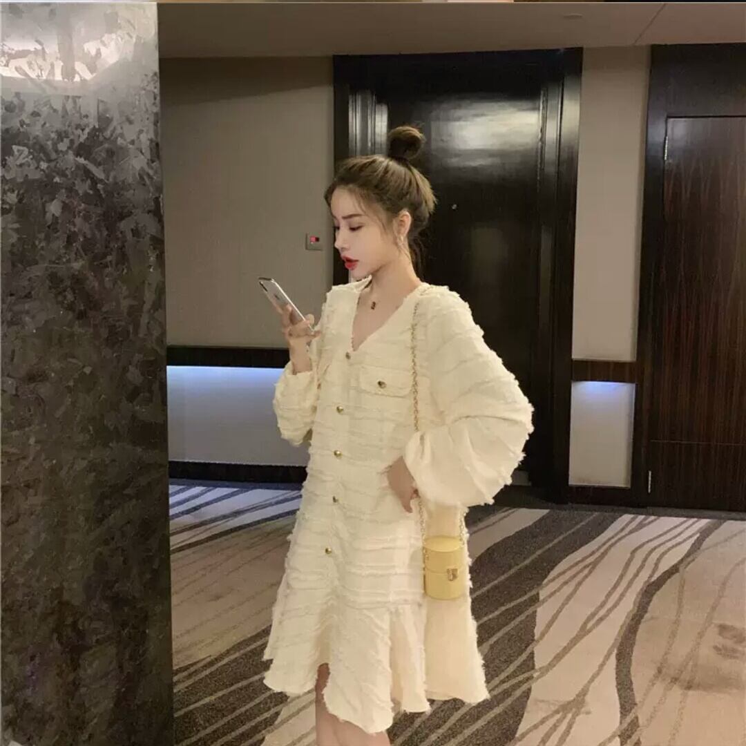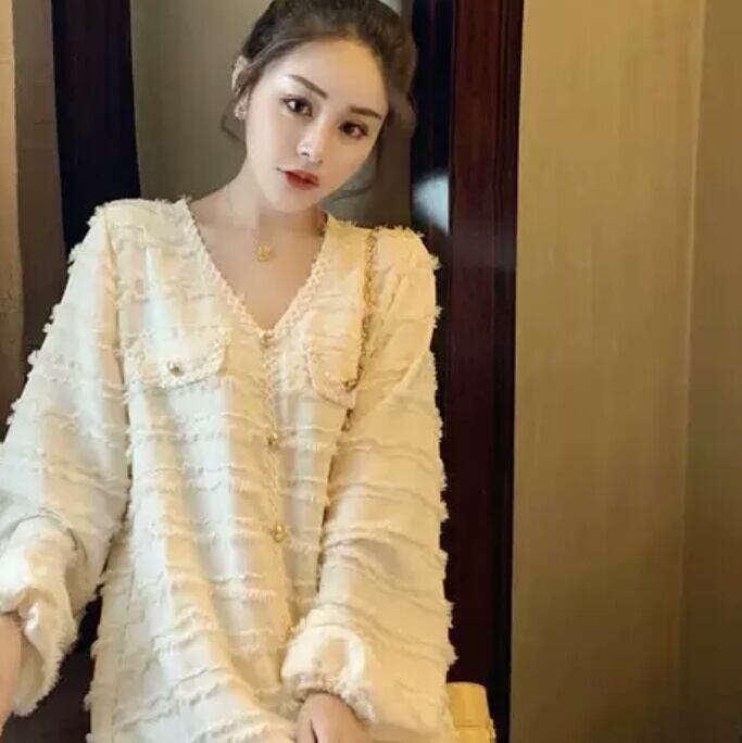 Vネック フリル ワンピース ショート丈 ミニ丈 長袖 大人 カジュアル キレイめ 可愛い 清楚 お出かけ お買い物 デート 女子会 春 夏 通学 学生 通勤 韓国ファッション