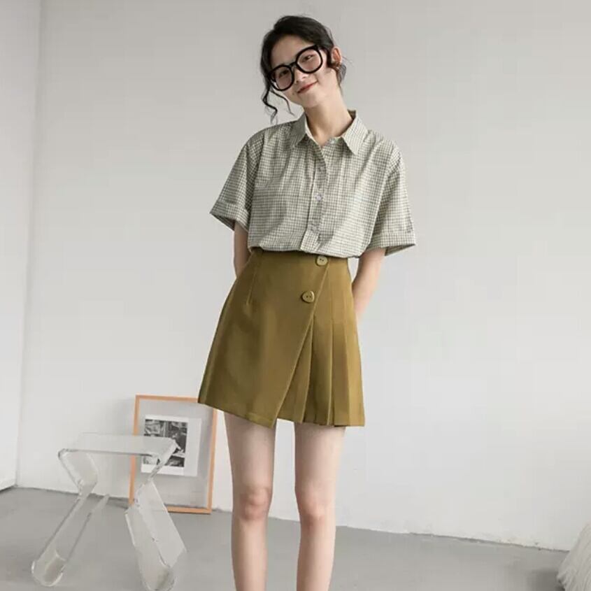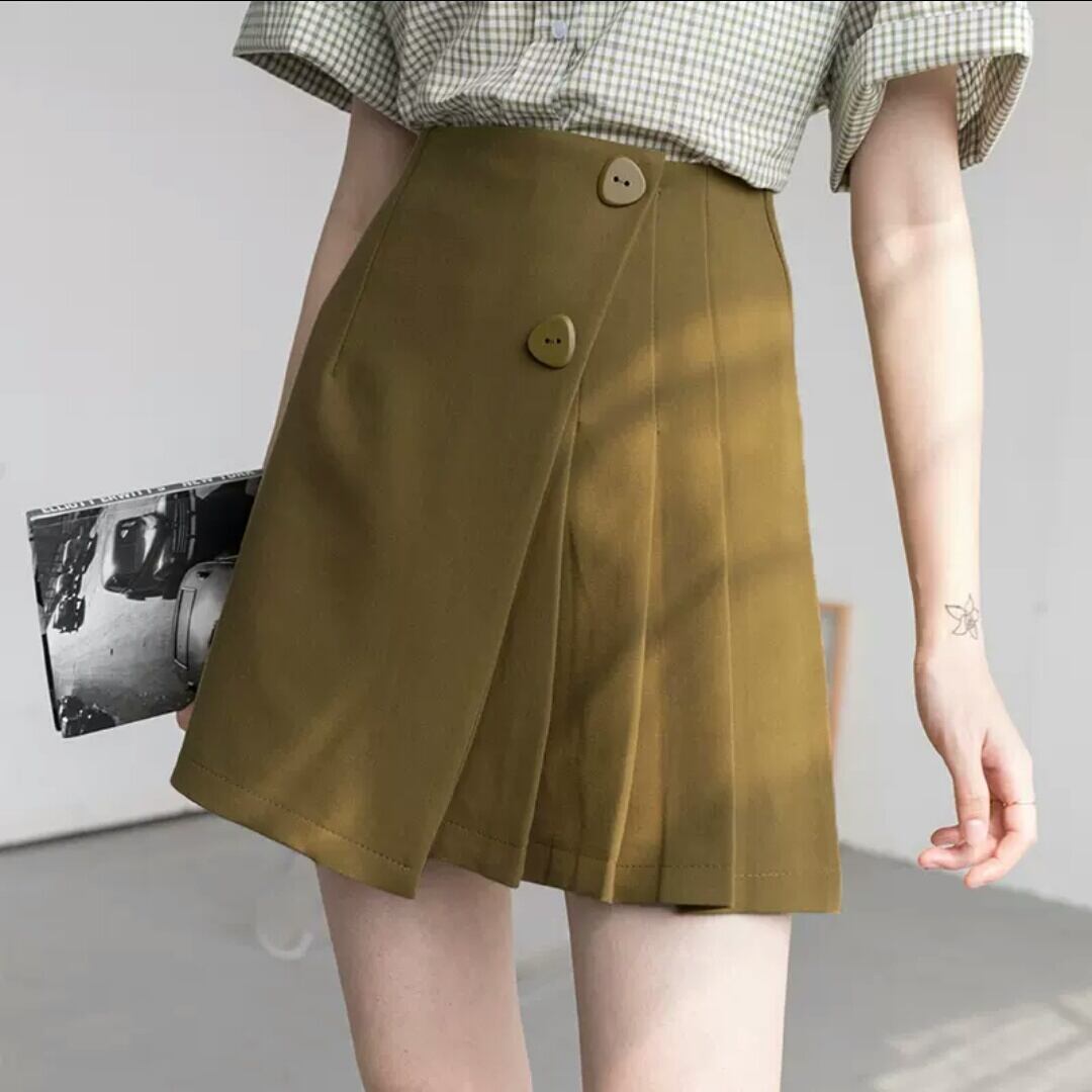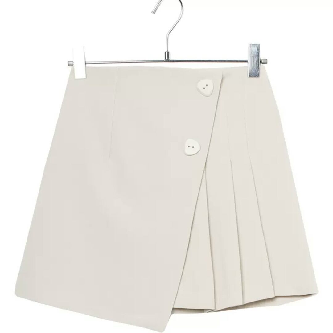 全4色 アシンメトリー プリーツ スカート ミニ丈 ショート丈 Aライン ハイウエスト シンプル 無地 大人 カジュアル キレイめ 可愛い お出かけ お買い物 デート 女子会 春 夏 通学 学生 通勤 韓国ファッション
