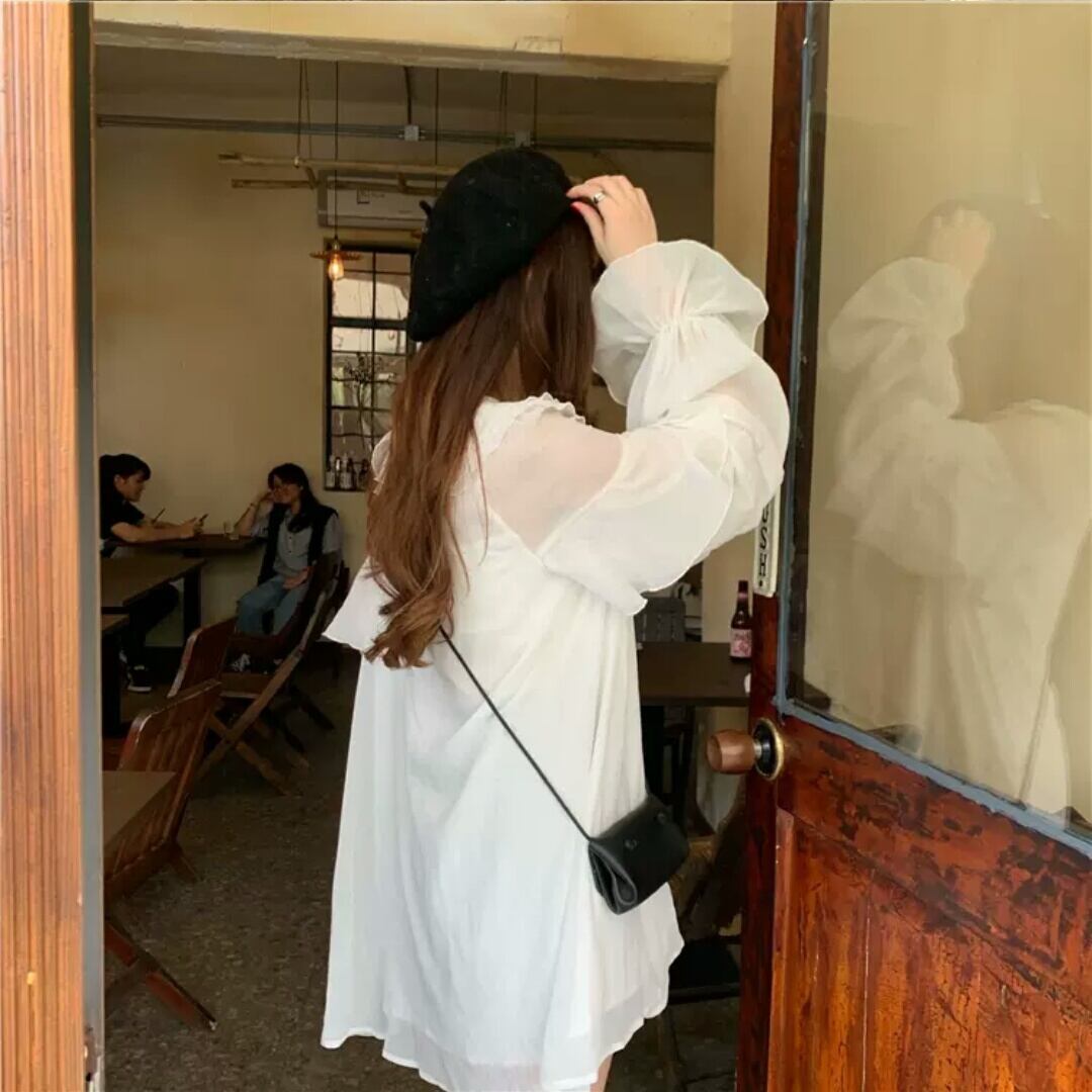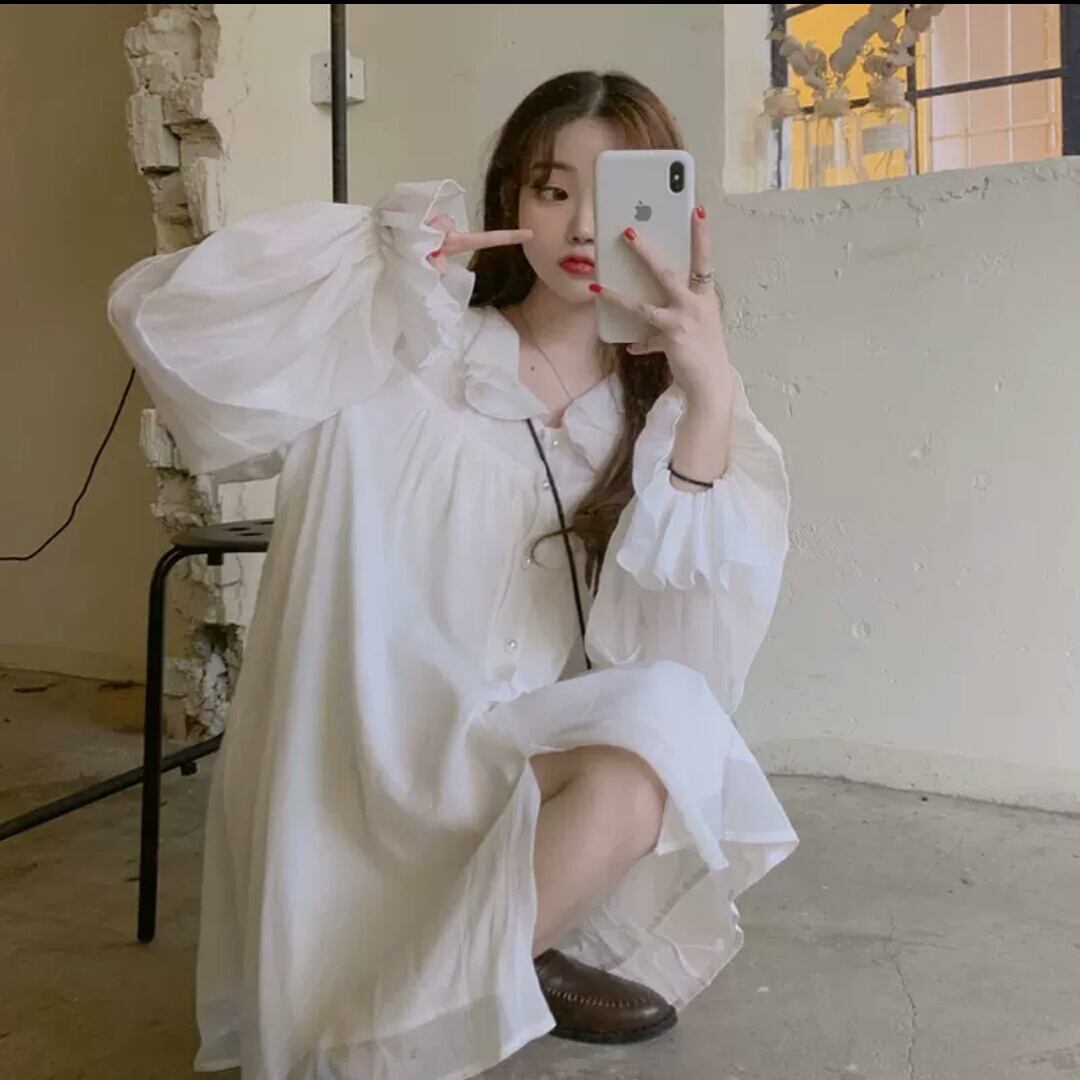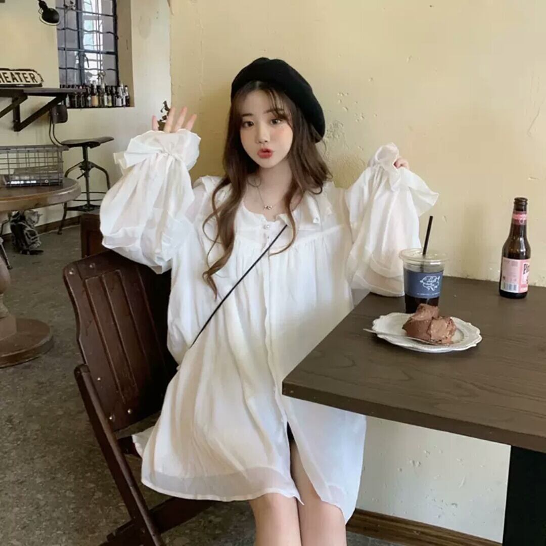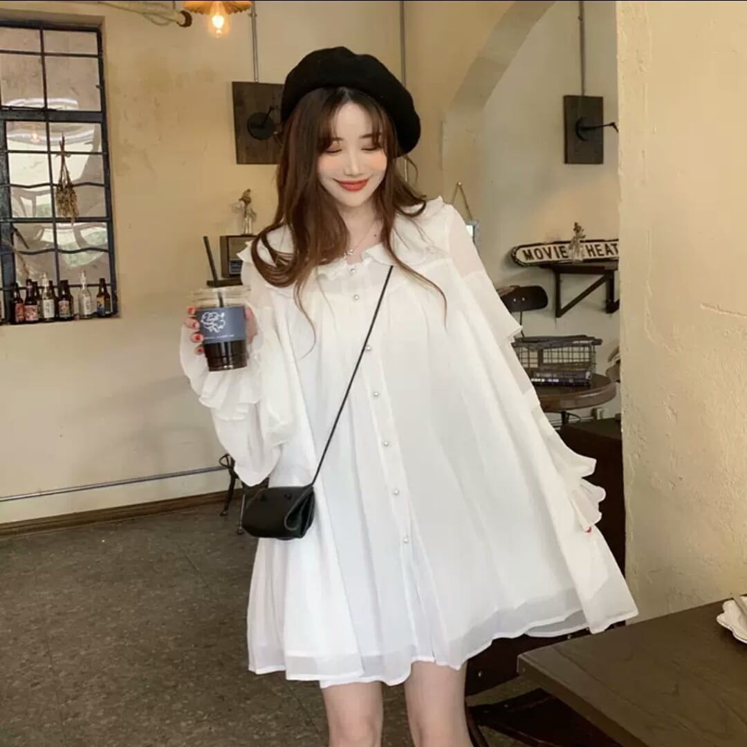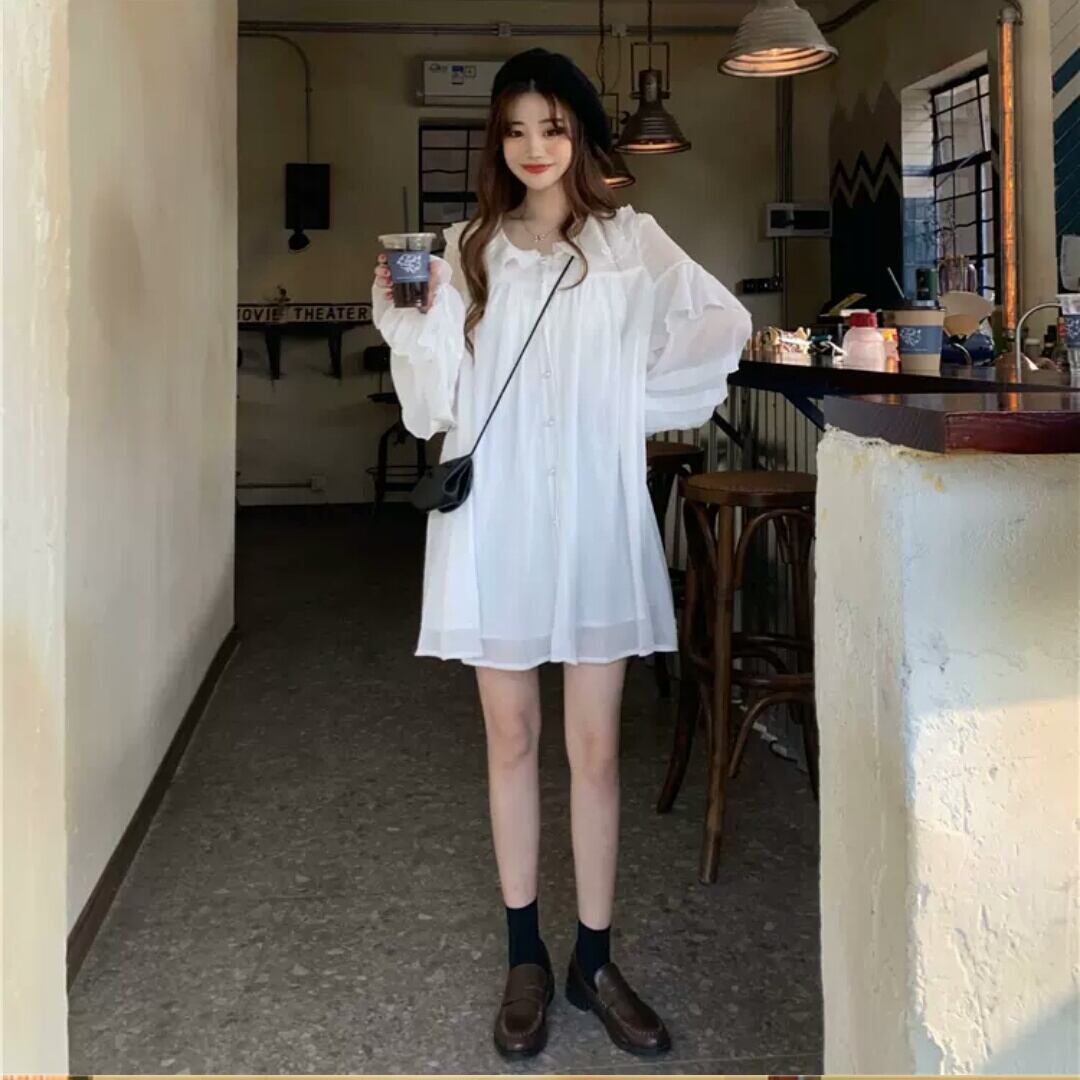 襟つき 長袖 ショート丈 ワンピース ミニ丈 ふんわり 大人 キレイめ 可愛い カジュアル お出かけ お買い物 デート 女子会 春 夏 秋 通学 学生 通勤 韓国ファッション