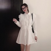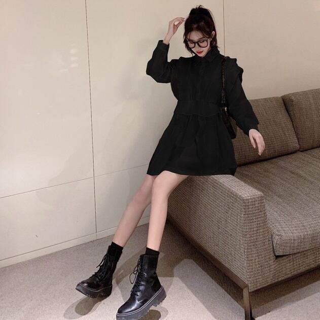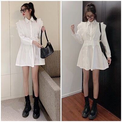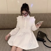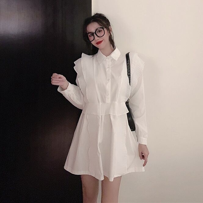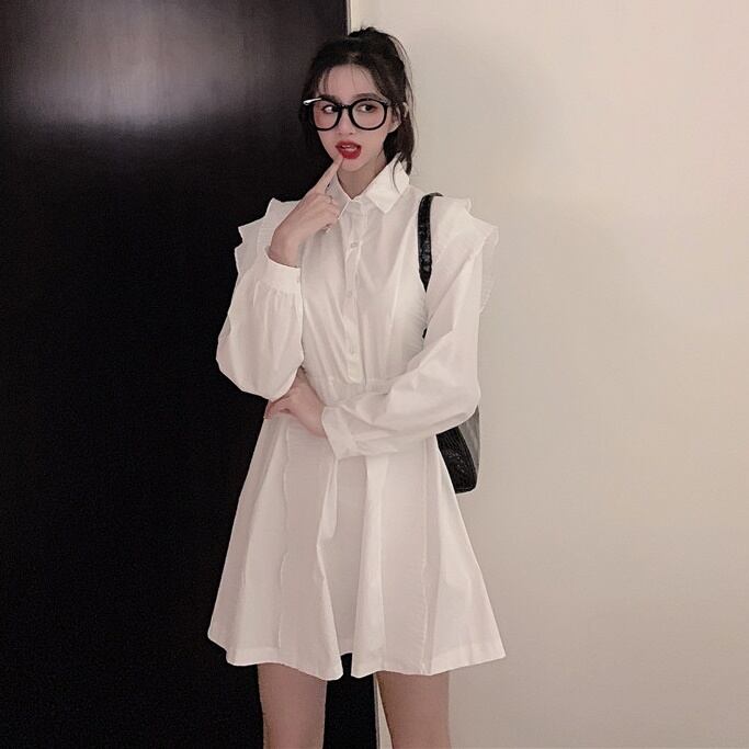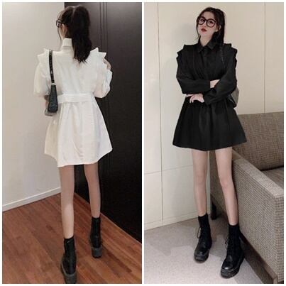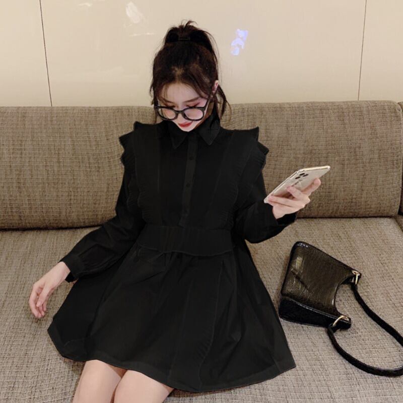 トップス チュニック シャツ フリル フロントボタン ワンピース ペプラム フレア 長袖 無地 上品 カジュアル きれいめ おしゃれ 大人可愛い 女子会 春 夏