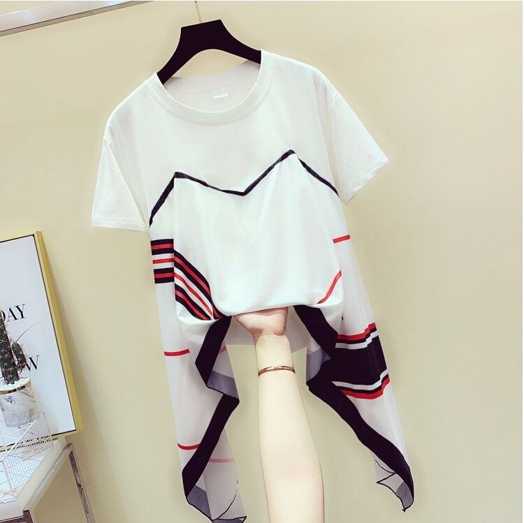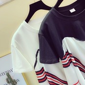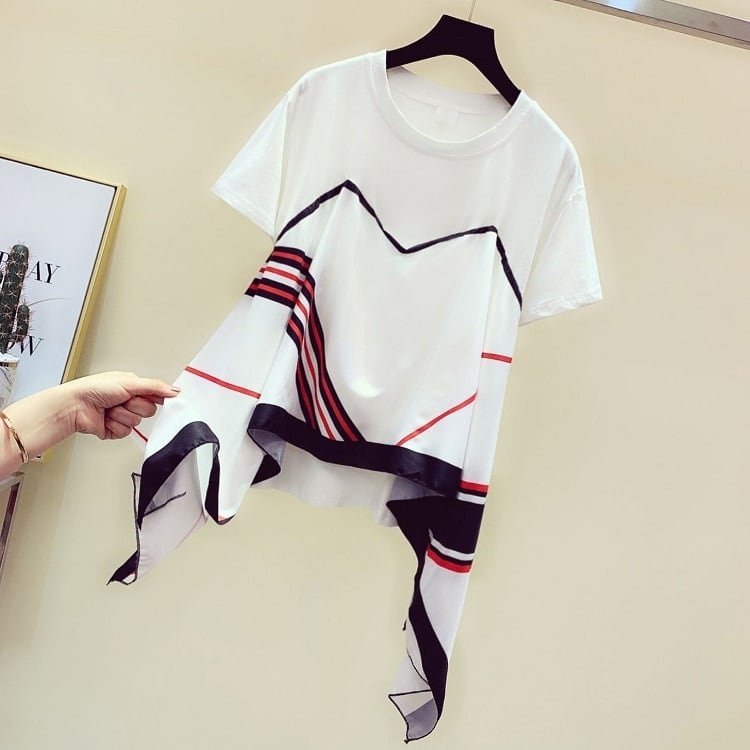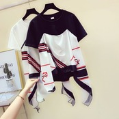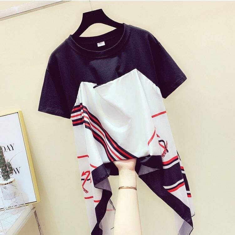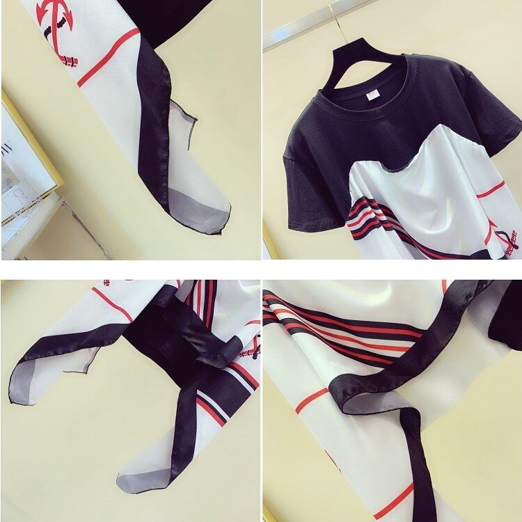全2色 Tシャツ 半袖 スカーフ ドッキング ラウンドネック プルオーバー カジュアル お出かけ デイリー ホワイト レッド ブラック