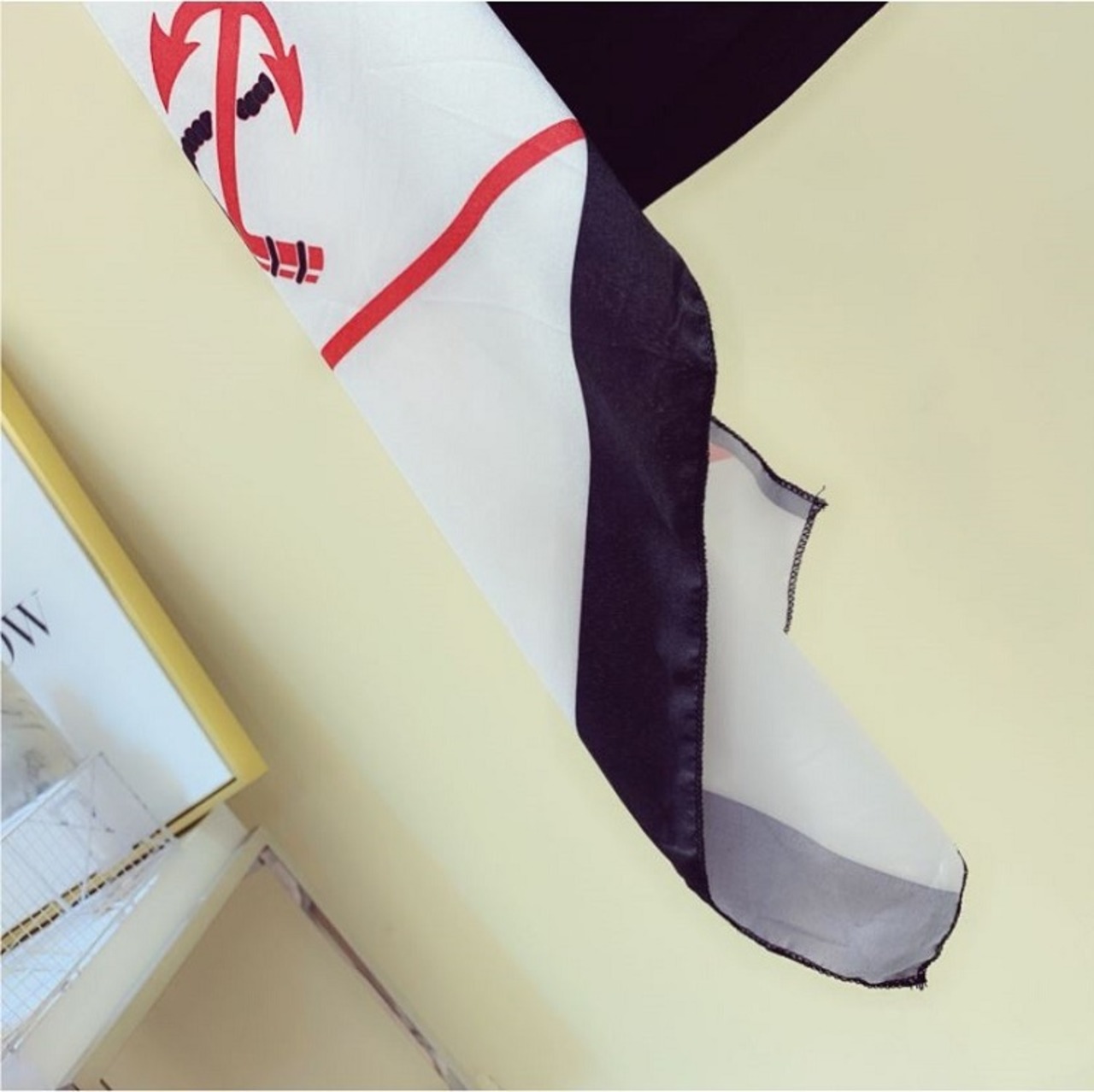Tシャツとスカーフがドッキングしたユニークなデザイン。