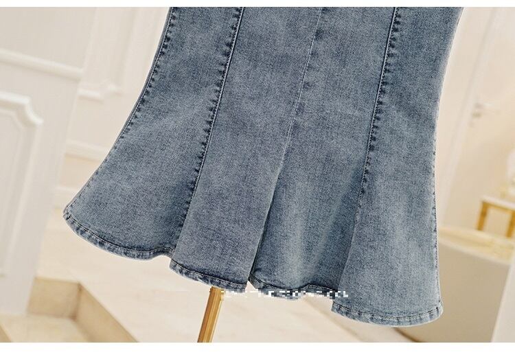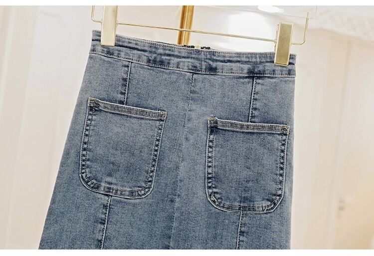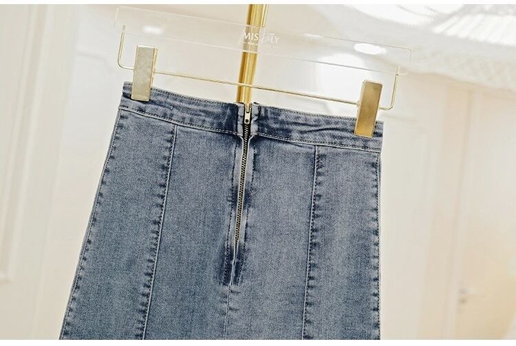 身体にフィットするスリムなシルエットのデニムスカート。