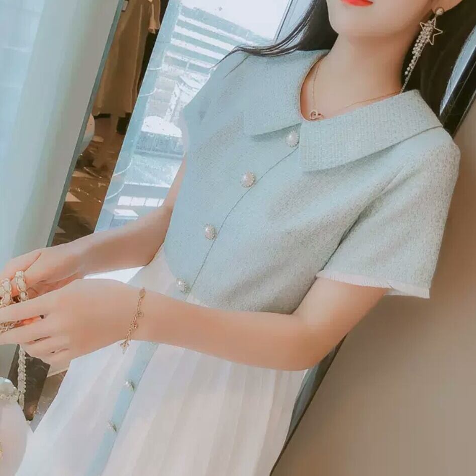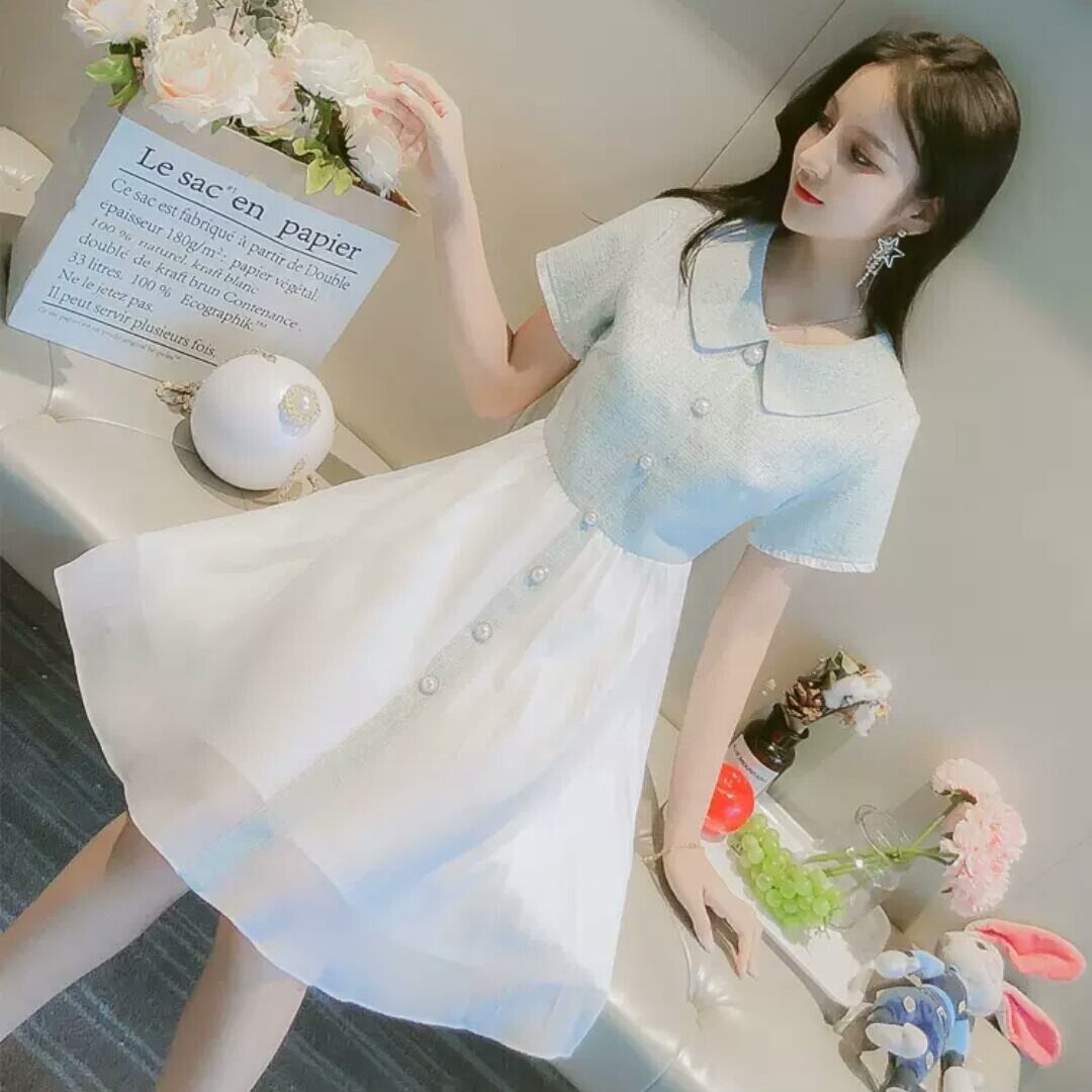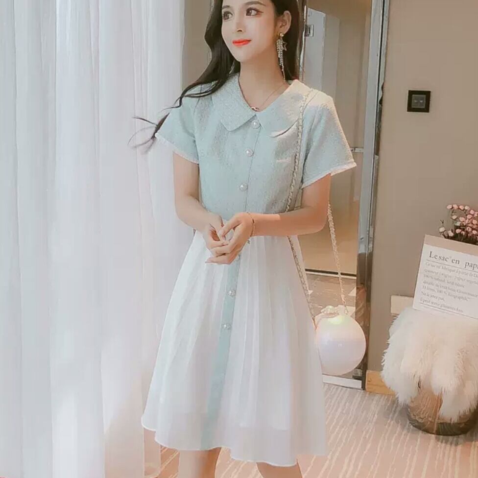 襟つき ショート丈 ふんわり ワンピース ミニ丈 大人 可愛い エレガント 上品 キレイめ ツートーン お出かけ お買い物 デート 女子会 春 夏 通学 学生 通勤 韓国ファッション