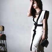 全2色 ノースリーブ スリット モノトーン ワンピース ドレス スリム タイト ひざ丈 大人 キレイめ 上品 エレガント お呼ばれ パーティー お出かけ お買い物 デート 女子会 春 夏 韓国ファッション