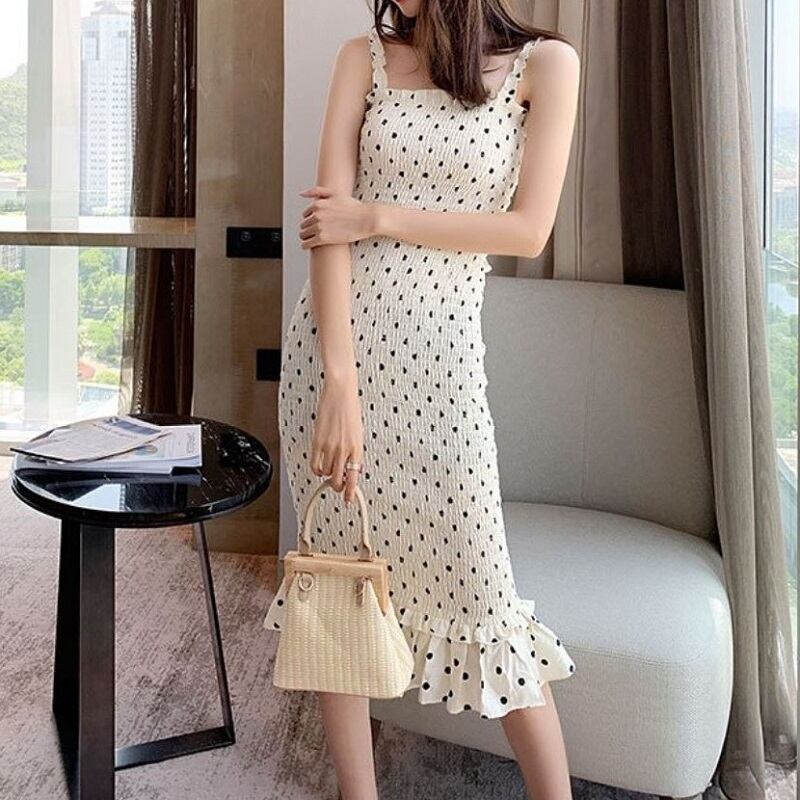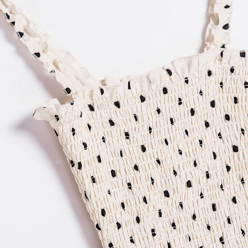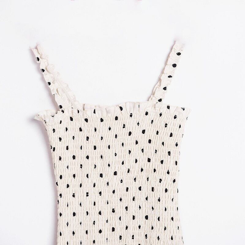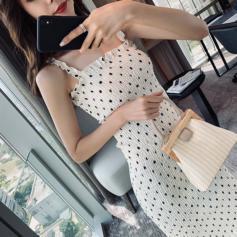 キャミソールワンピース キャミソールドレス ドット柄 ストラップ フリル カジュアル お出かけ リゾート レジャー デイリー