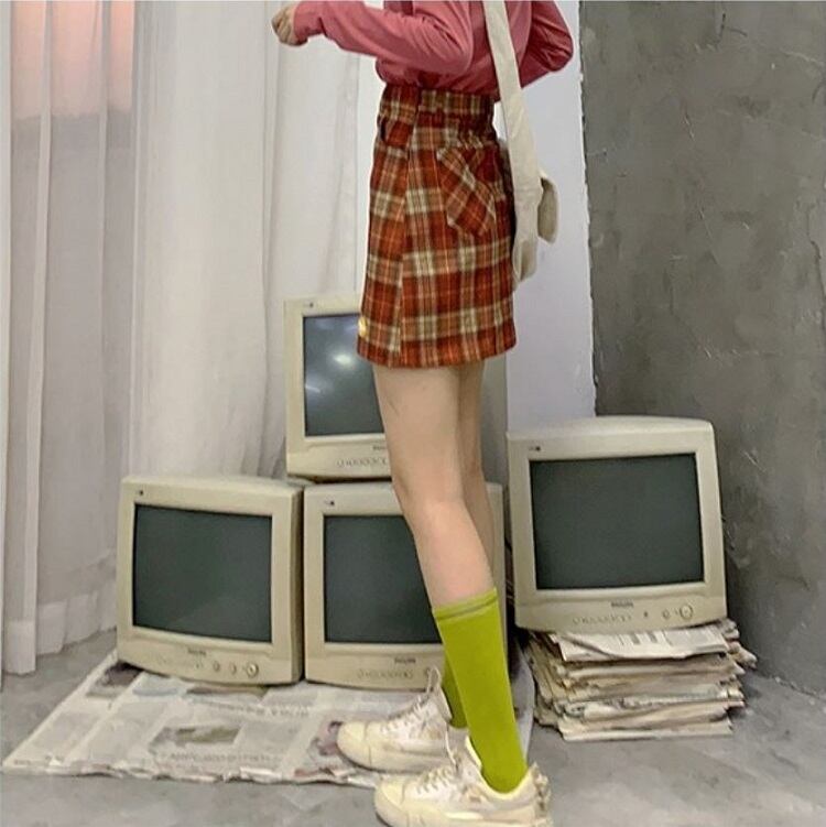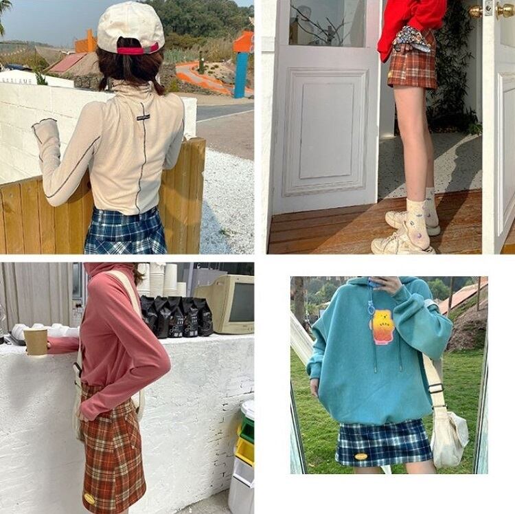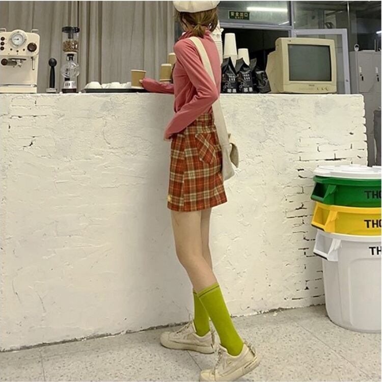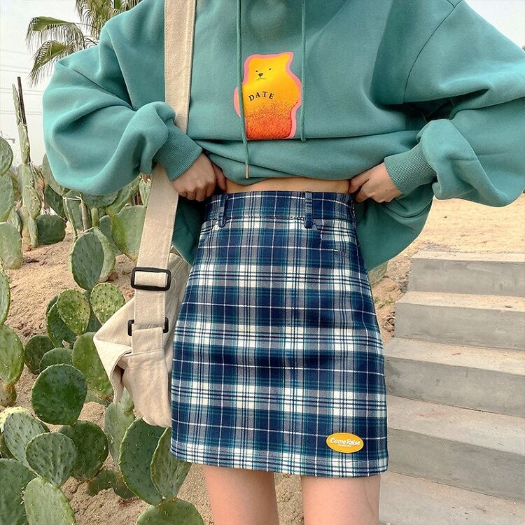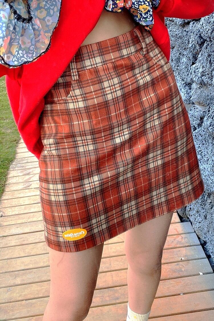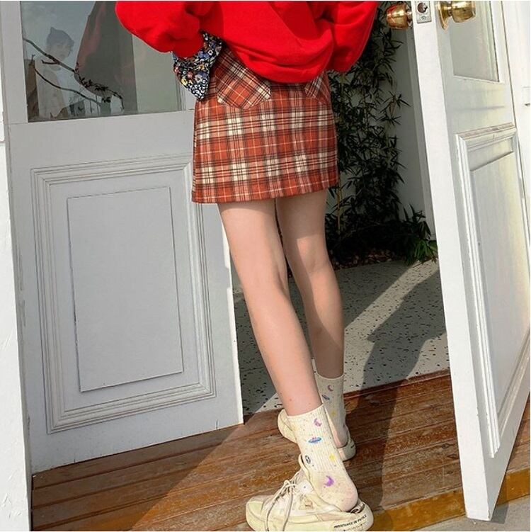 全2色 タイトスカート ミニスカート チェック きれいめ カジュアル お出かけ レジャー デイリー 台形 スカート ブルー レッド 10代 20代 レディース アパレル