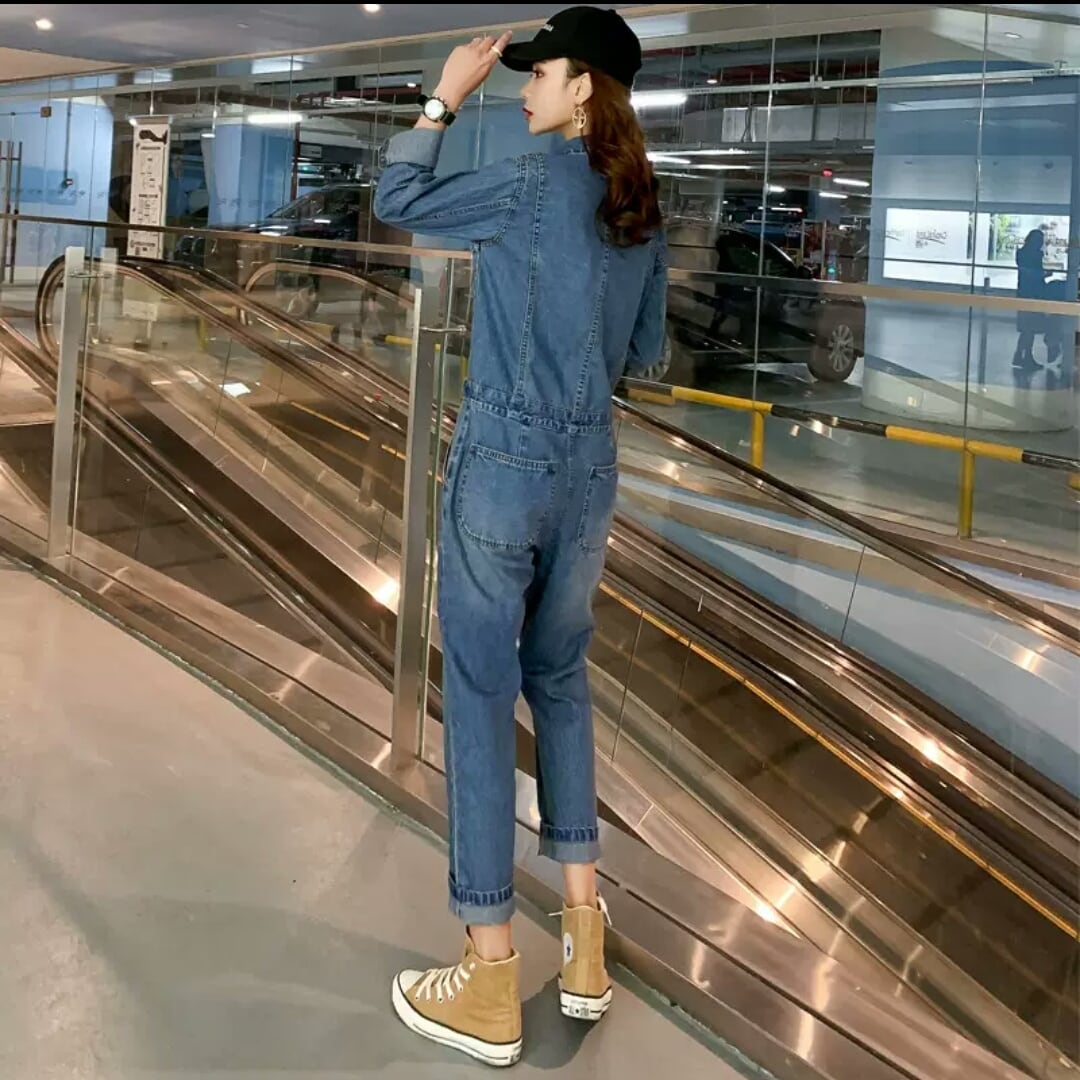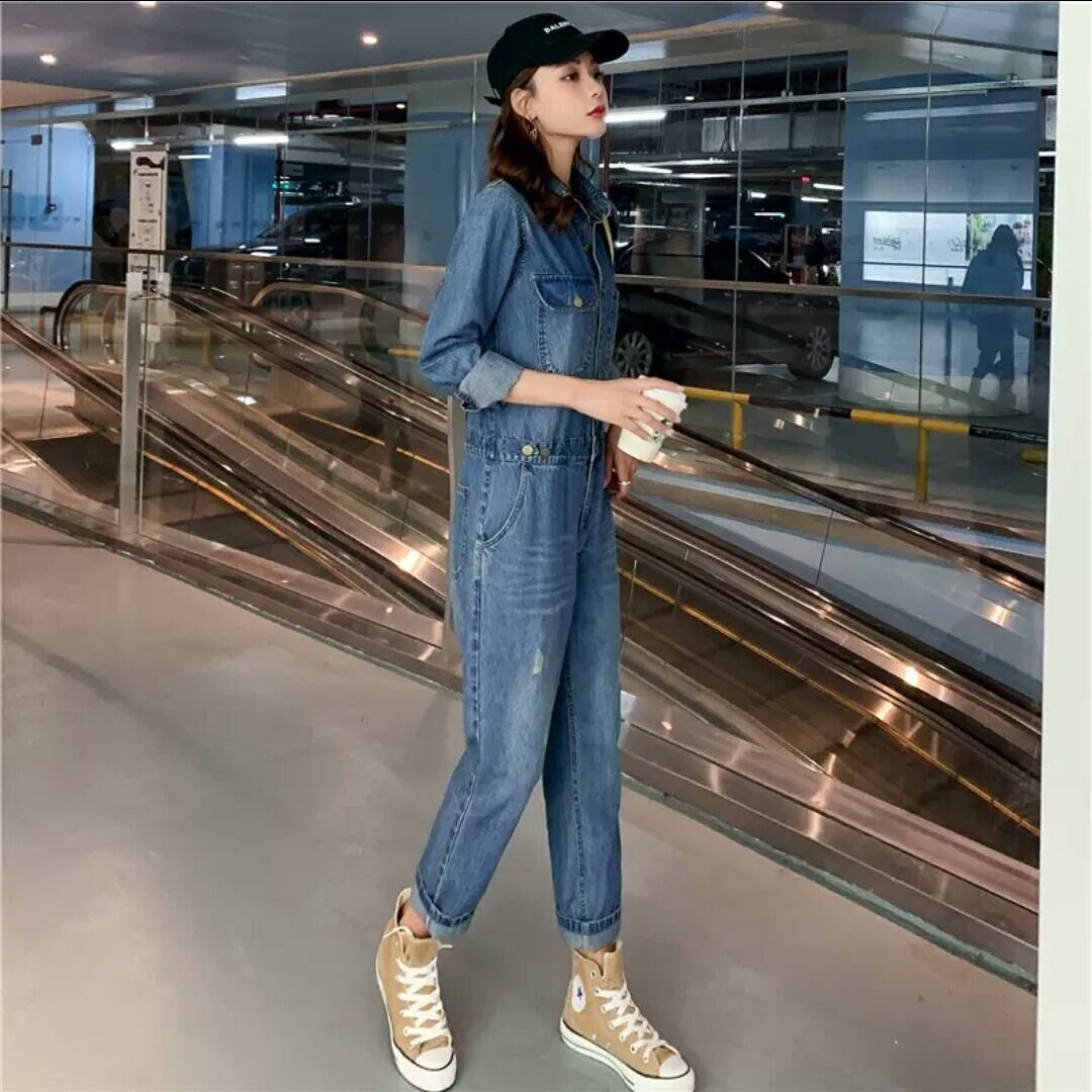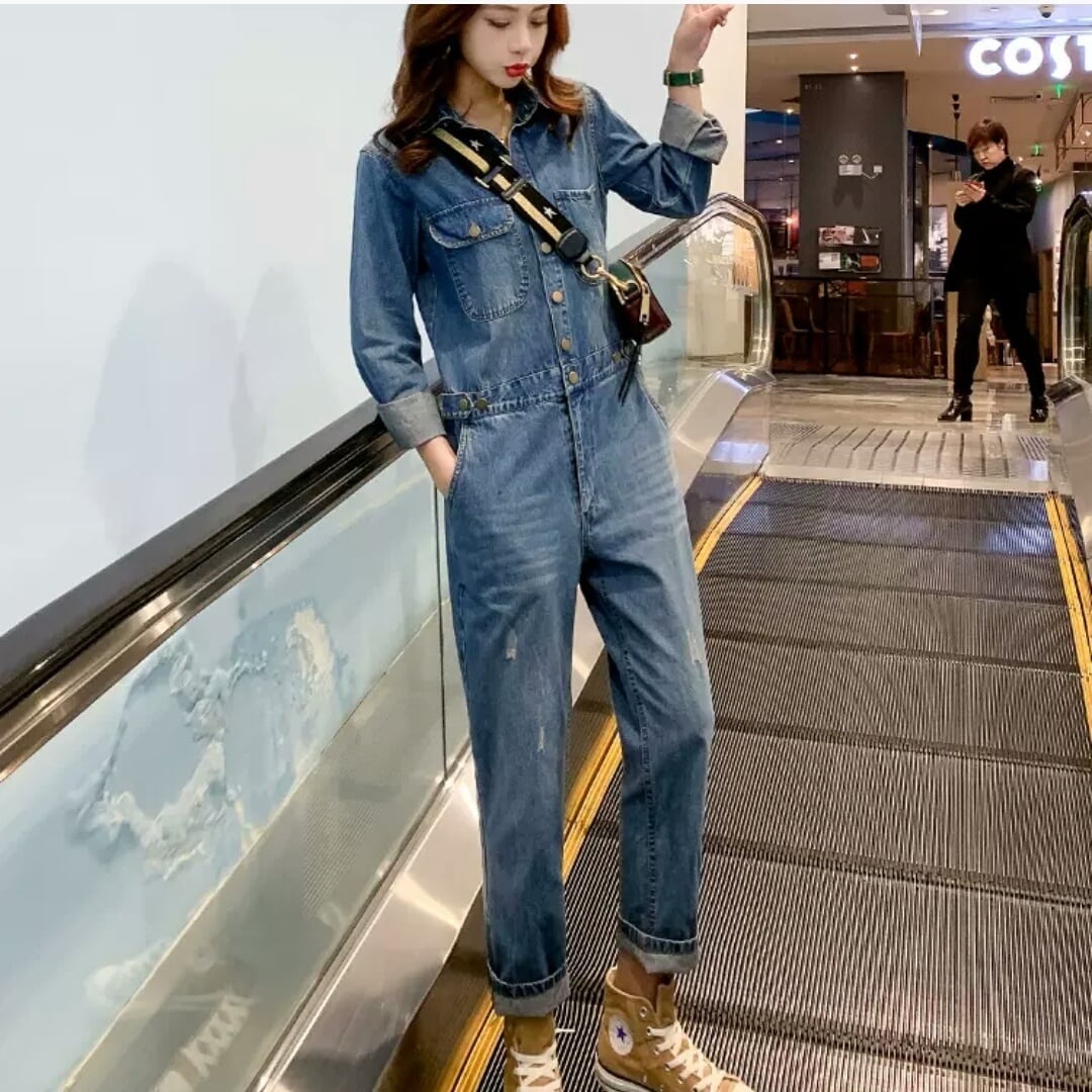 デニム オーバーオール ジャンプスーツ オールインワン 大人 カジュアル 可愛い キレイめ スタイリッシュ お出かけ お買い物 デート 女子会 春 秋 通学 学生 通勤 韓国ファッション