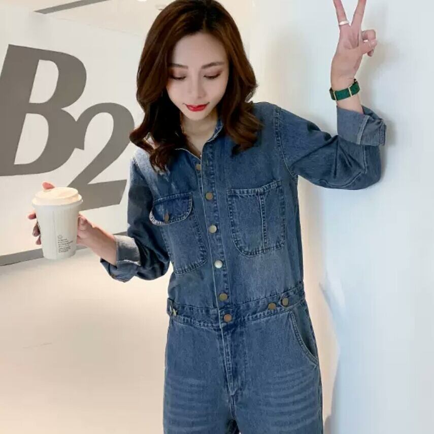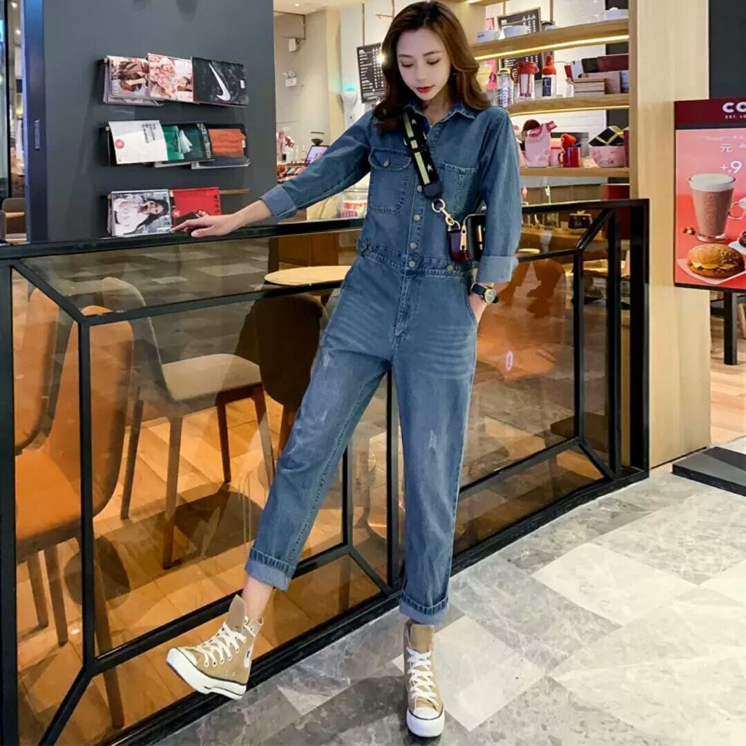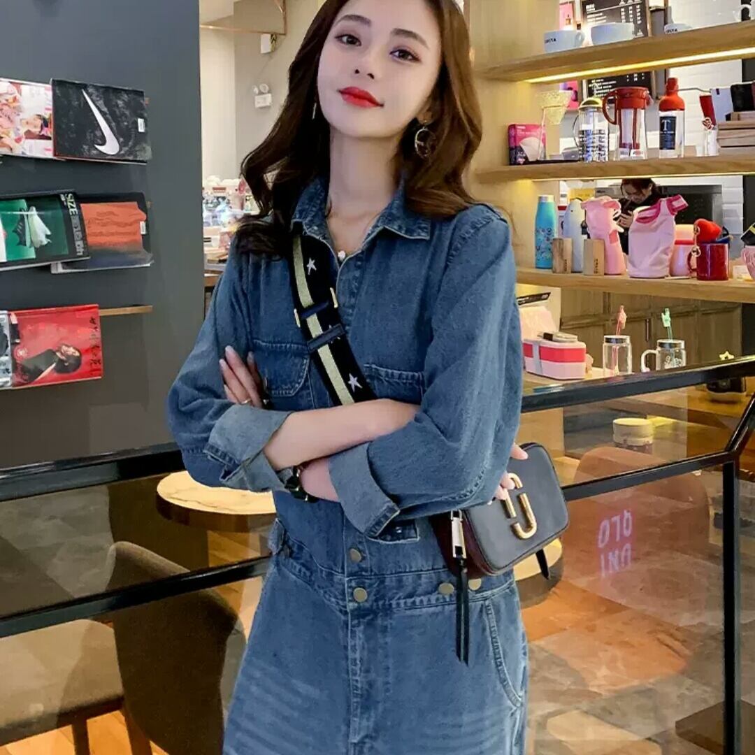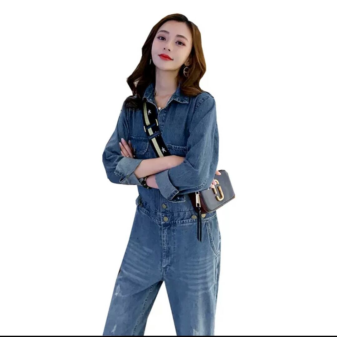 デニム オーバーオール ジャンプスーツ オールインワン 大人 カジュアル 可愛い キレイめ スタイリッシュ お出かけ お買い物 デート 女子会 春 秋 通学 学生 通勤 韓国ファッション