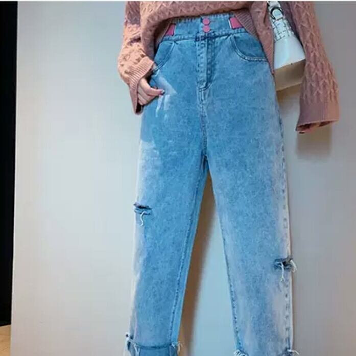 全2色 ハイウエスト デニム ストレート ルーズ パンツ ジーンズ 大人 カジュアル 可愛い キレイめ お出かけ お買い物 デート 女子会 春 夏 通学 学生 通勤 韓国ファッション