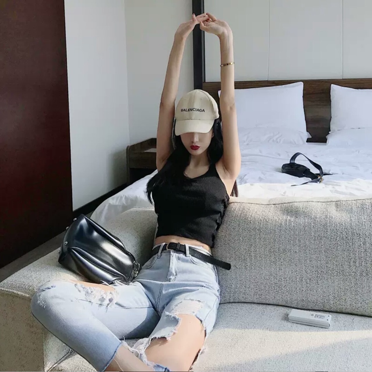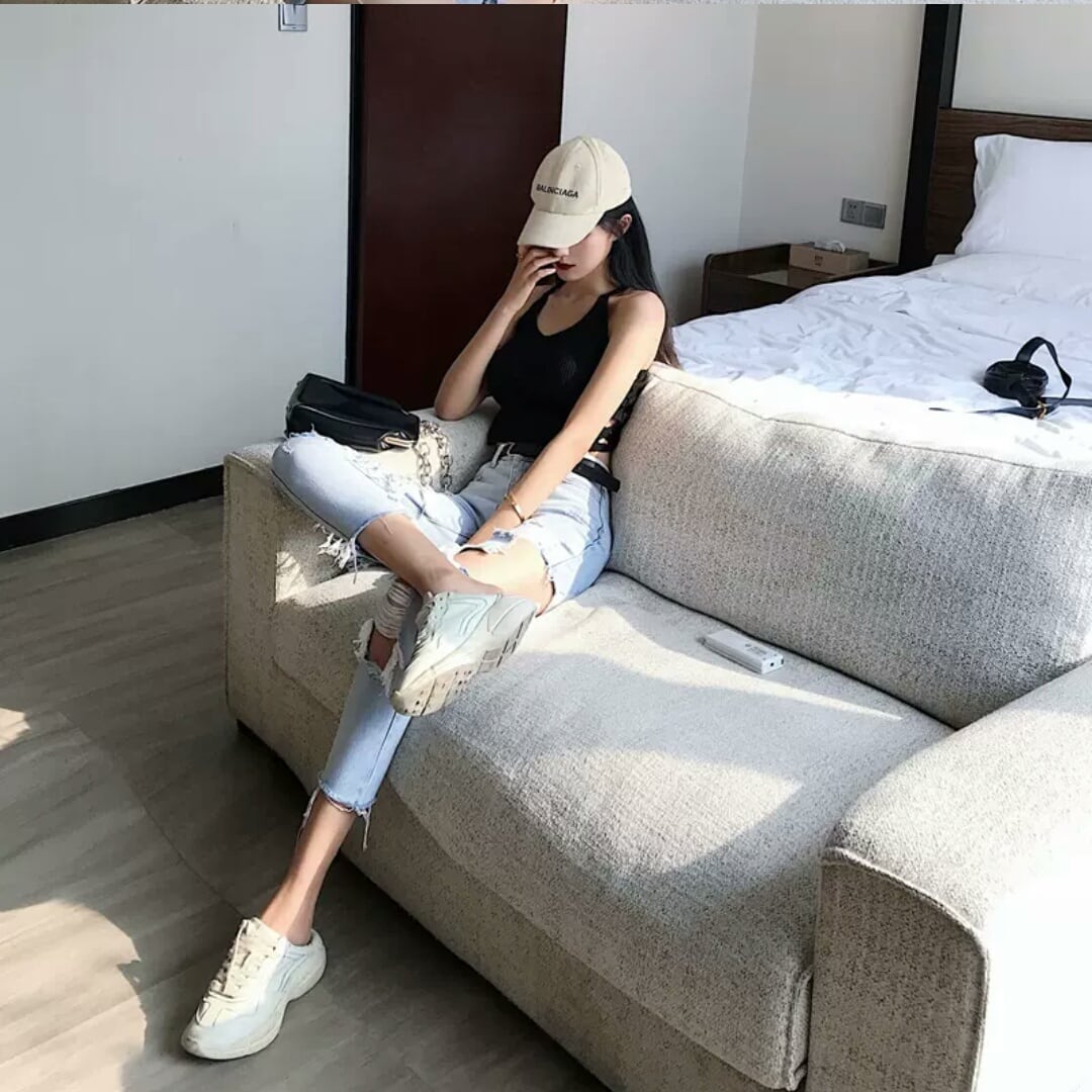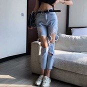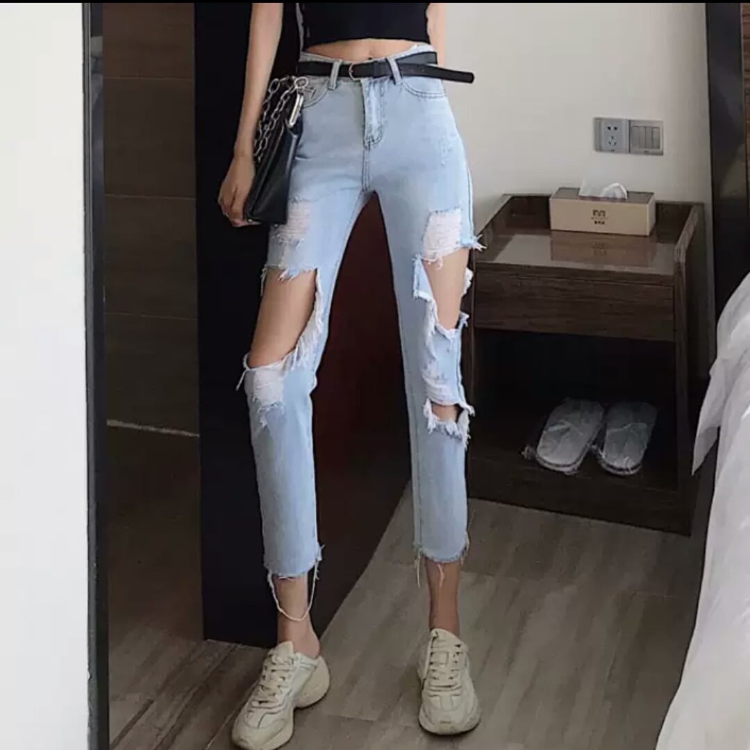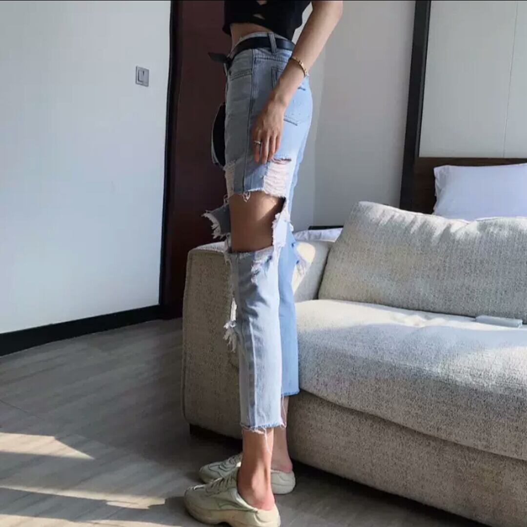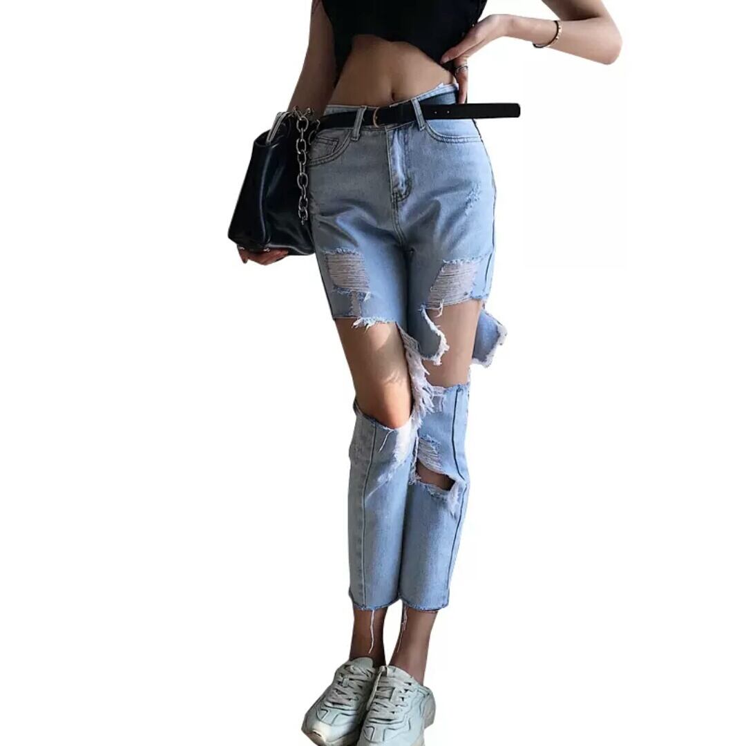 ダメージ ジーンズ デニム ハイウエスト クロップド 大人 カジュアル 可愛い 個性的 セクシー お出かけ お買い物 デート 女子会 春 夏 通学 学生 通勤 韓国ファッション