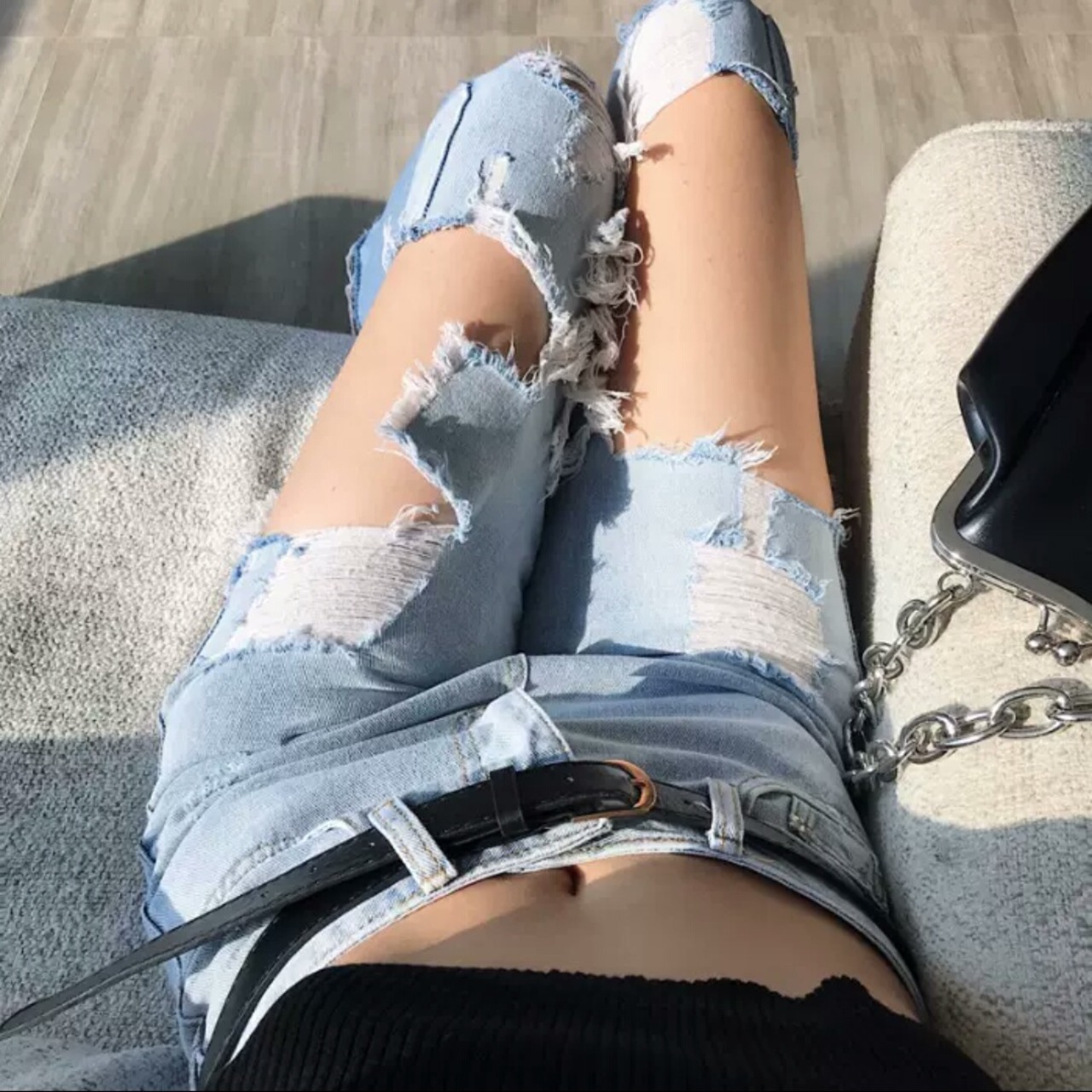 大きめ穴あきのダメージクロップドジーンズ♪
